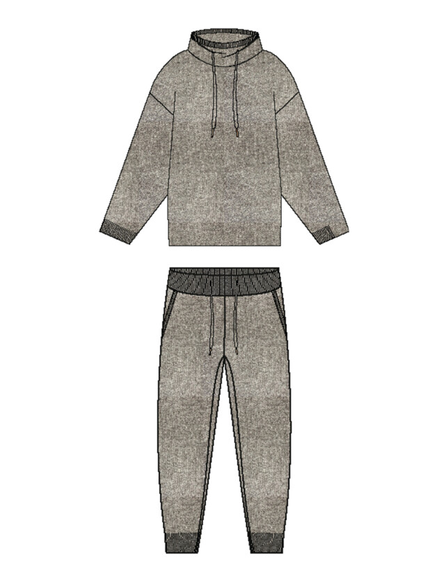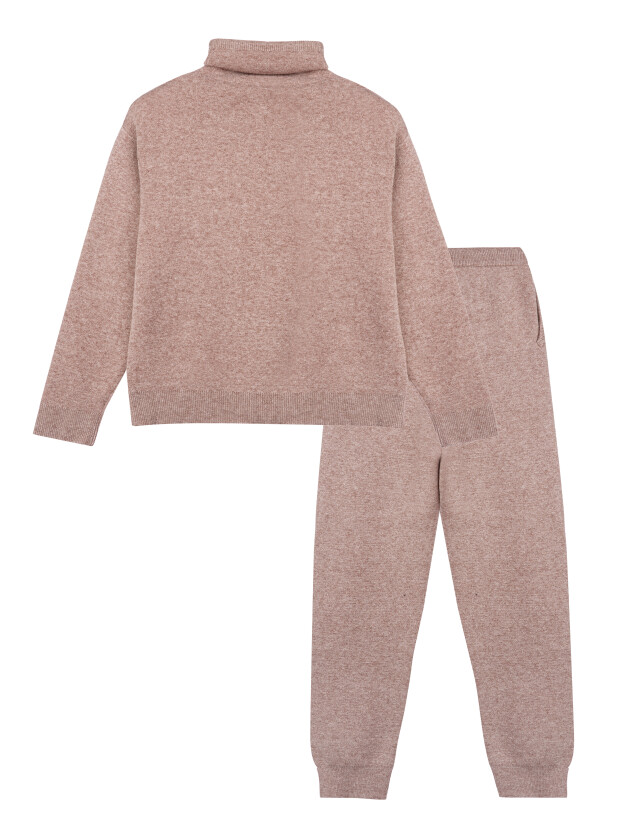 Комплект: джемпер и брюки из вязаного трикотажа. 50% вискоза. Вискоза отличается высокой гигроскопичностью - она впитывает влагу и отлично сохраняет тепло. Горловина, манжеты и низ изделия в рубчик. Брюки с эластичным поясом на шнурке. Карманы в боковых швах.