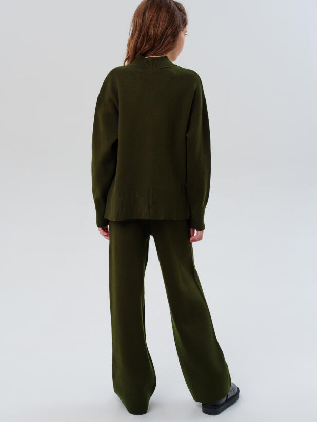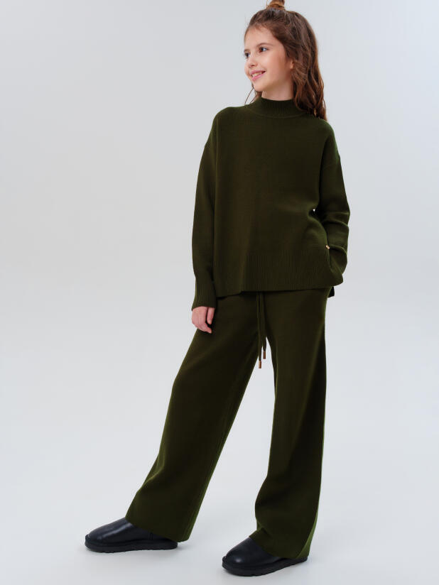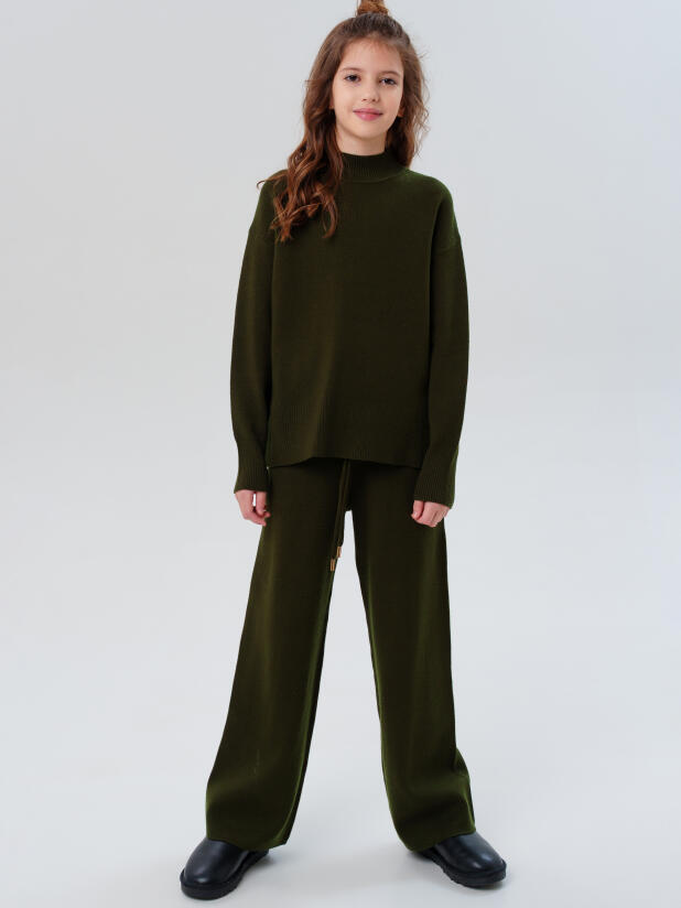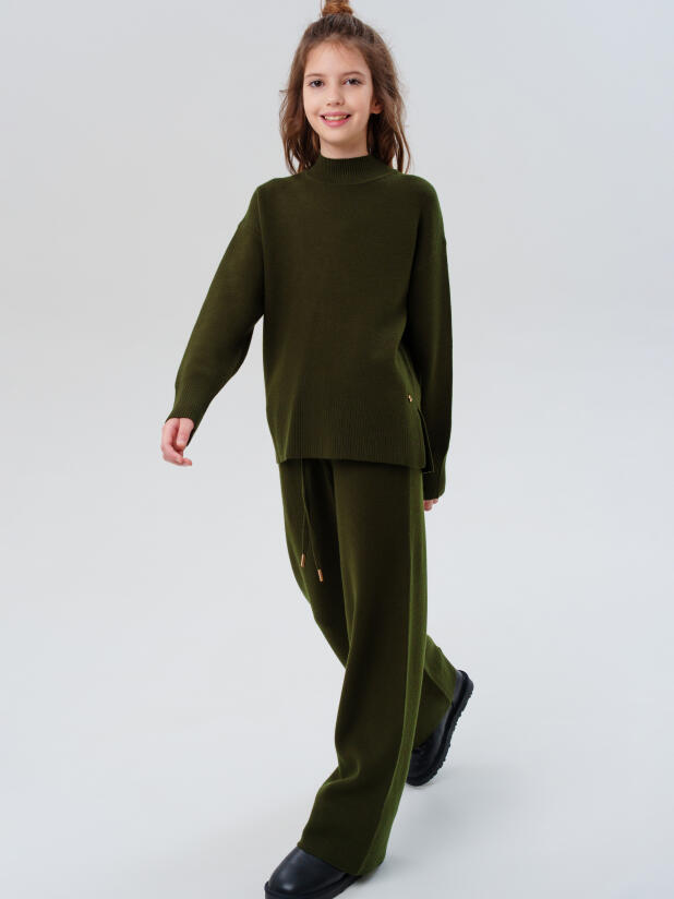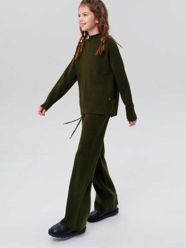 Классический хаки трикотажный вязаный костюм для девочки подростка от PlayToday — стильный и универсальный выбор на каждый день. Комплект включает джемпер свободного кроя и прямые брюки, выполненные из мягкого трикотажа, который приятен к телу, хорошо держит форму и не деформируется после стирок. Современный оттенок хаки подчёркивает актуальность модели и легко вписывается в школьный, повседневный и нарядный гардероб.