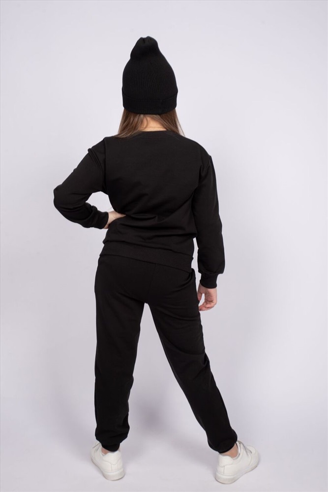 Комплект для девочки, состоящий из джемпера и брюк. Толстовка прямого силуэта со спущенным длинным рукавом. Горловина круглая, обработана воротником из кашкорсе. Рукав заканчивается манжетом из кашкорсе. По низу изделия пояс из кашкорсе. На полочке принт шелкография. Надпись переводится как Любовь. Брюки прямого силуэта. На изделии выполнены карманы с отрезным бочком и отлетной мешковиной. По низу изделия манжеты из кашкорсе.