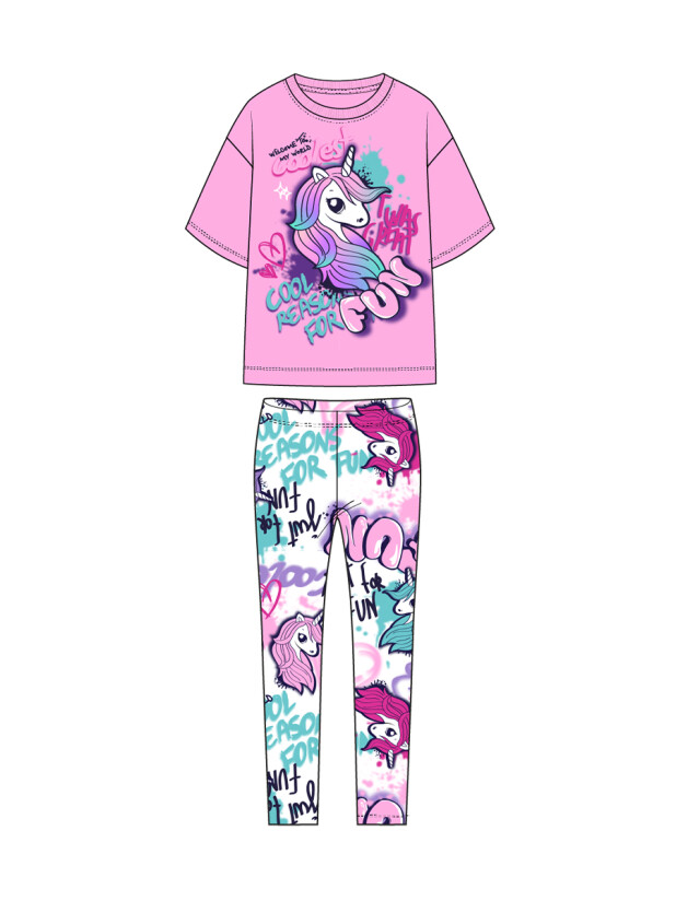 Костюм детский для девочки: футболка, леггинсы. Футболка, леггинсы с высоким содержанием хлопка. Модель из капсульной коллекции UNICORN KUROMI (ЮНИКОРН КОРОМИ). Соберите полный образ в едином стиле! Комплект будет актуален для детского сада, в садик.