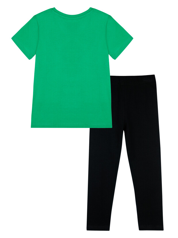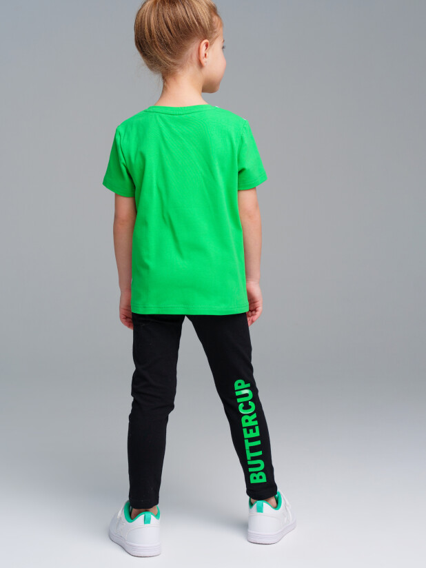 Комплект: футболка, легинсы из качественного и приятного на ощупь трикотажа джерси. Высокое содержание хлопка 95%. Благодаря наличию эластана в составе ткани изделие проще в уходе и держит форму. Футболка свободного кроя. Эластичная резинка по талии.