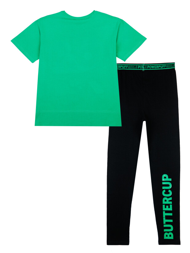 Комплект: футболка, легинсы из качественного и приятного на ощупь трикотажа джерси. Высокое содержание хлопка 95%. Благодаря наличию эластана в составе ткани изделие проще в уходе и держит форму. Футболка прямого кроя. Пояс - эластичная резинка.