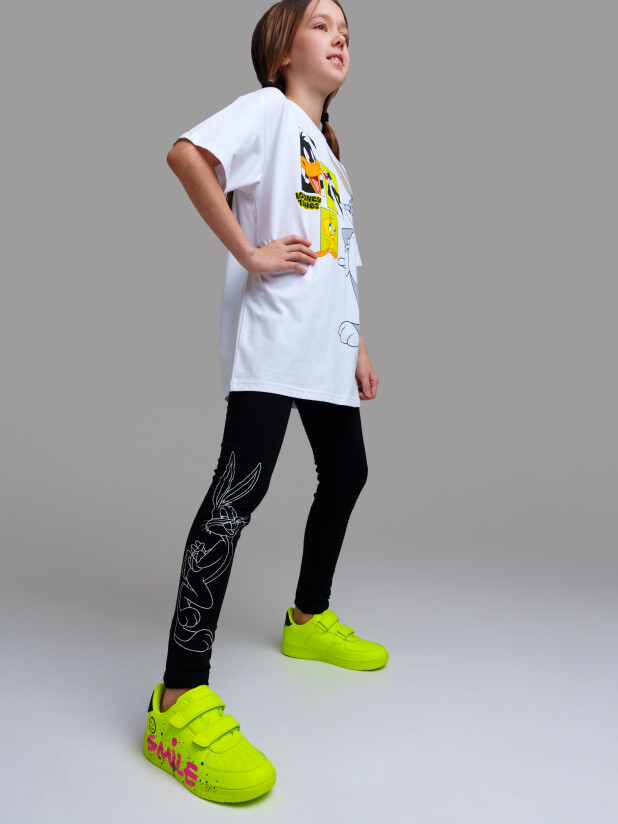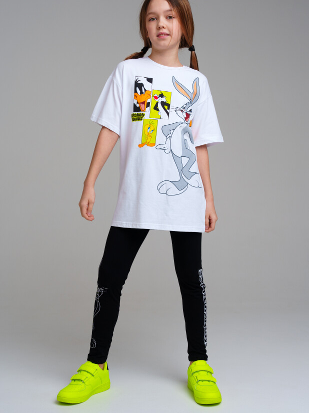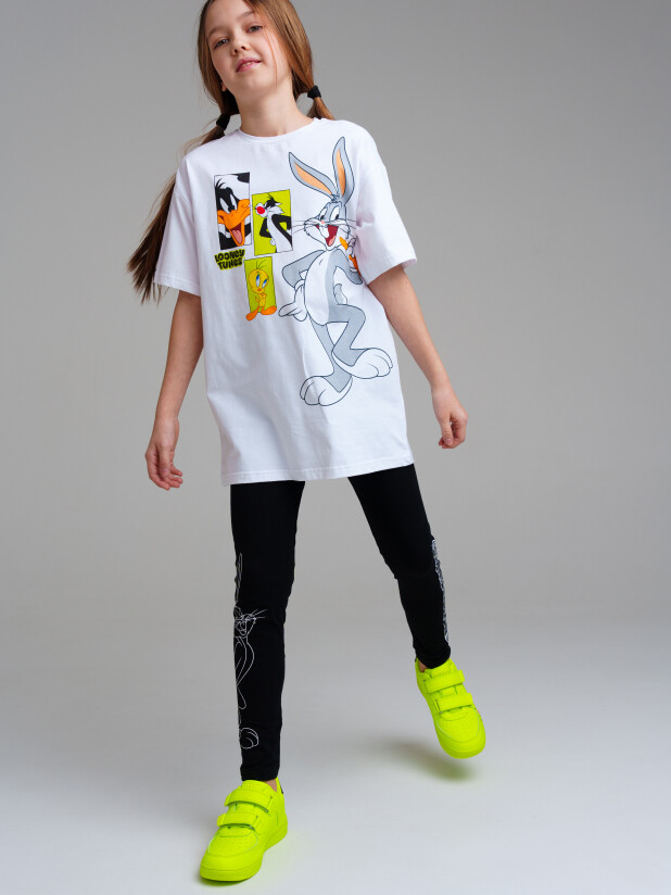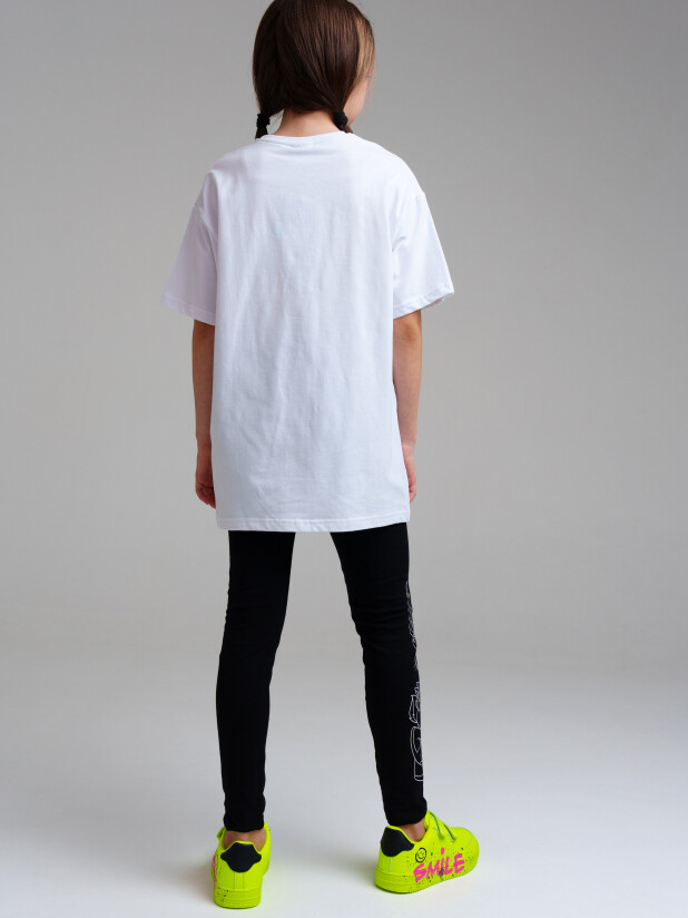 Комплект: футболка oversize, легинсы из качественного и приятного на ощупь трикотажа джерси. Высокое содержание хлопка. Благодаря наличию эластана в составе ткани изделие проще в уходе и держит форму. Эластичный пояс.