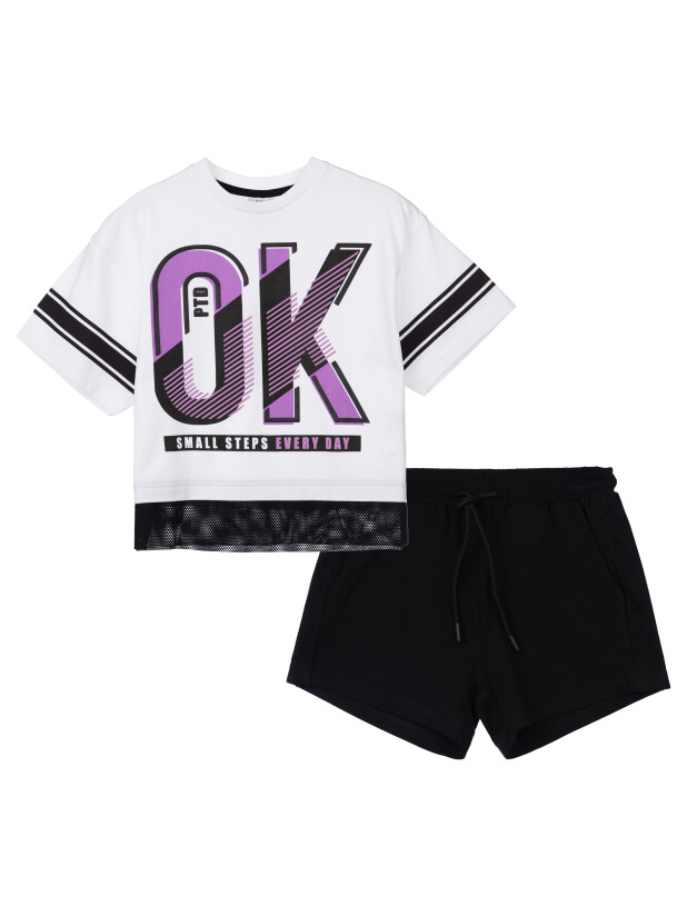 Спортивный костюм в школу для девочки подростка- необходимая составляющая для занятий физкультурой и спортом. Костюм для школьницы отлично подойдет для физкультуры как на улице, так и в зале. Трикотажный спортивный школьный костюм с высоким содержанием хлопка 95%. Благодаря наличию эластана в составе ткани костюм для школы проще в уходе и держит форму. Шорты на резинке с дополнительной утяжкой шнурком. Шорты с функциональными боковыми карманами. В сочетании с оверсайз футболкой составляют стильный полноценный комплект, мотивирующий на движение.