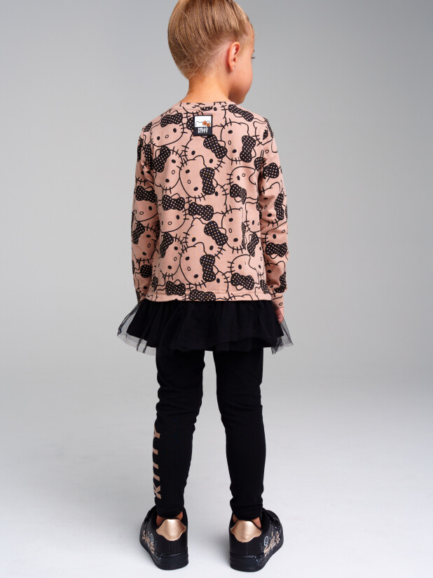 Комплект: лонгслив и легинсы из качественного эластичного и приятного на ощупь трикотажа джерси. Высокое содержание хлопка 95%. Благодаря наличию эластана в составе ткани изделие держит форму и меньше мнется. Декор из сетки.