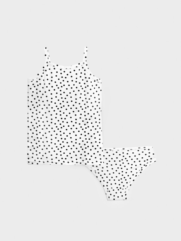 Этот хлопковый комплект белья для девочек прекрасно впишется в любой гардероб. Универсальный цвет и базовый крой делают его идеальным для ежедневного использования. Легкое удобное бельё не раздражает кожу и не скатывается даже при активной носке.