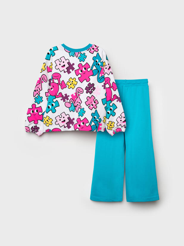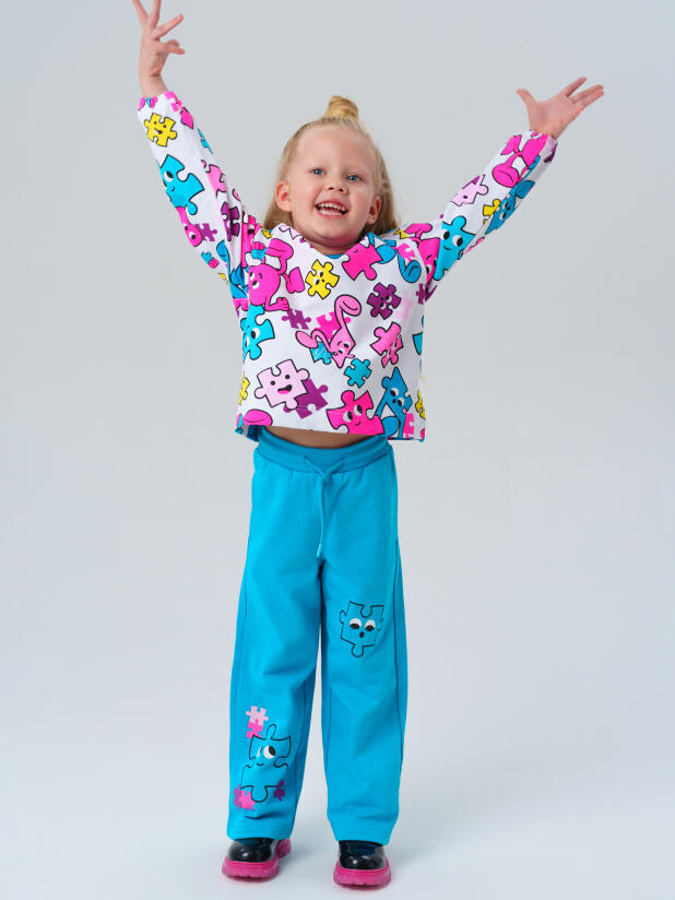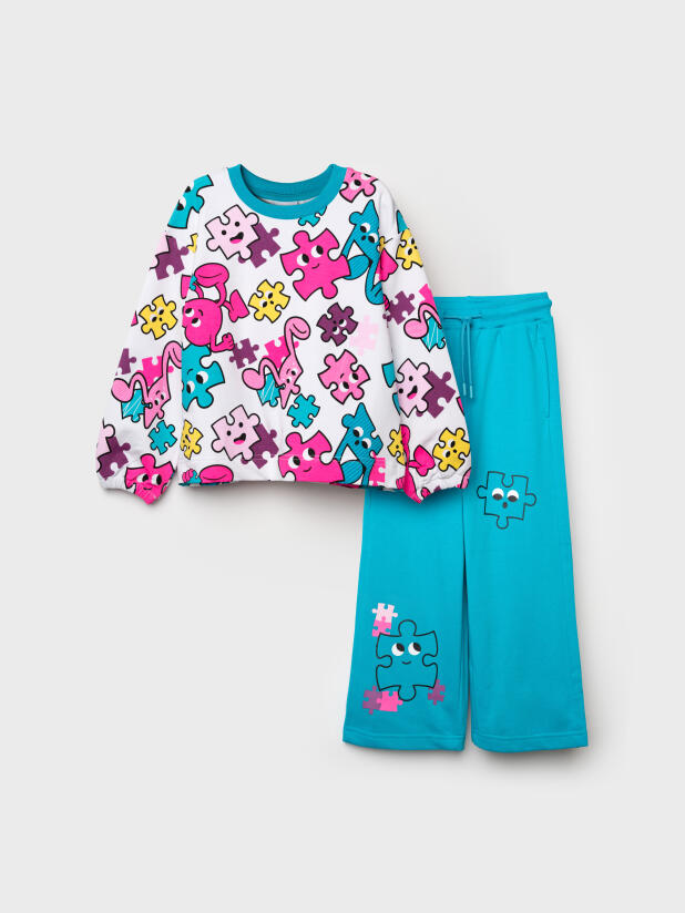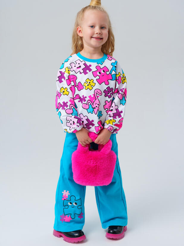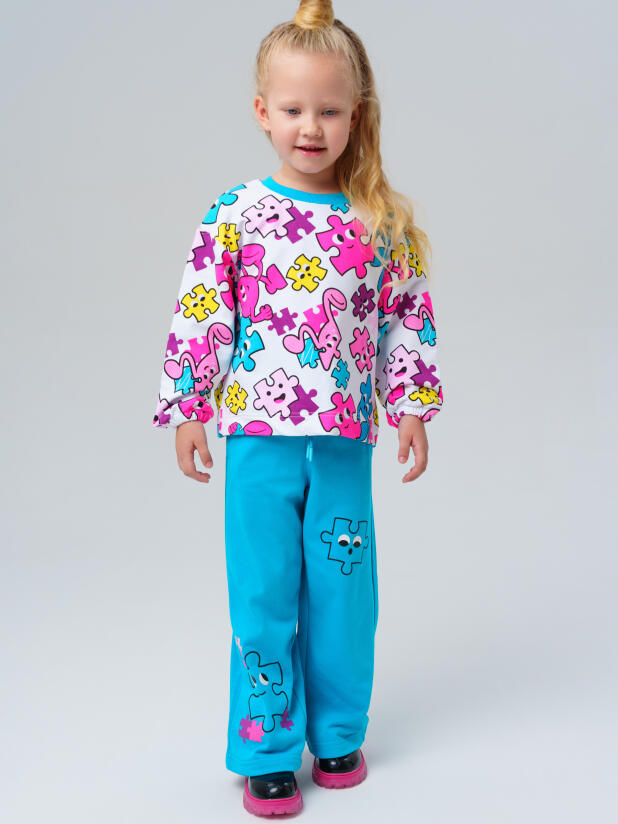 Детский трикотажный спортивный костюм для девочки от PlayToday: стильный свитшот и удобные брюки на резинке. Яркий принт делает образ модным, а мягкий футер без начёса обеспечивает комфорт каждый день — в детском саду, на прогулке или дома.