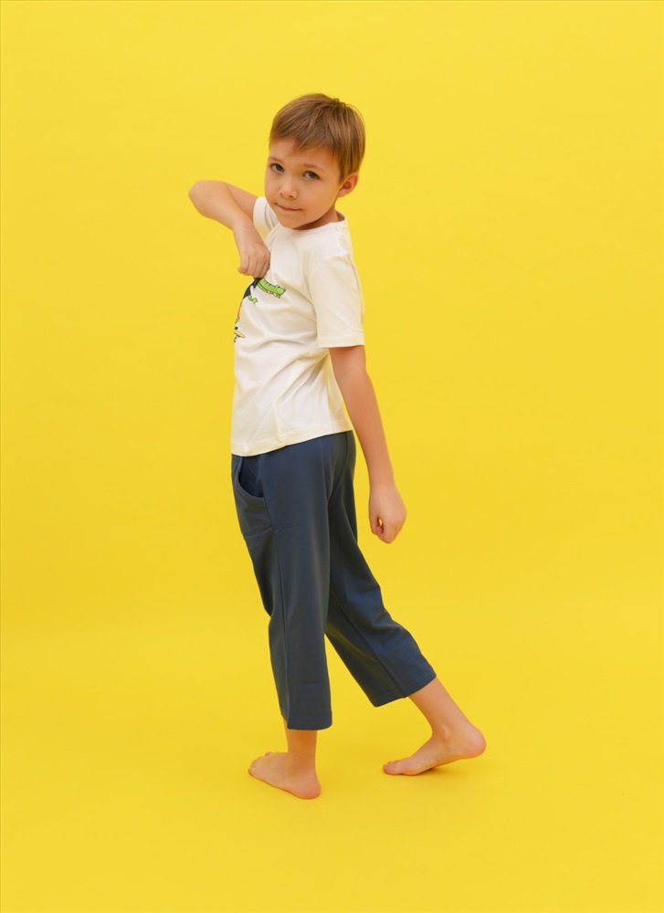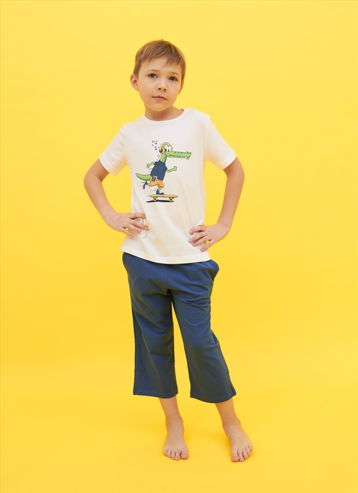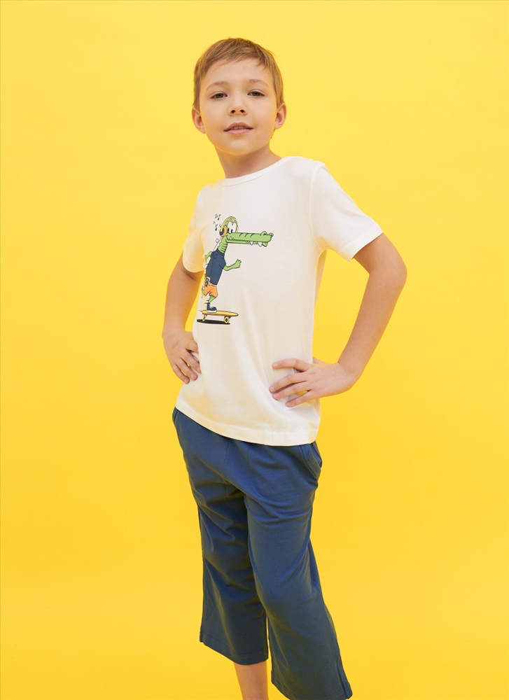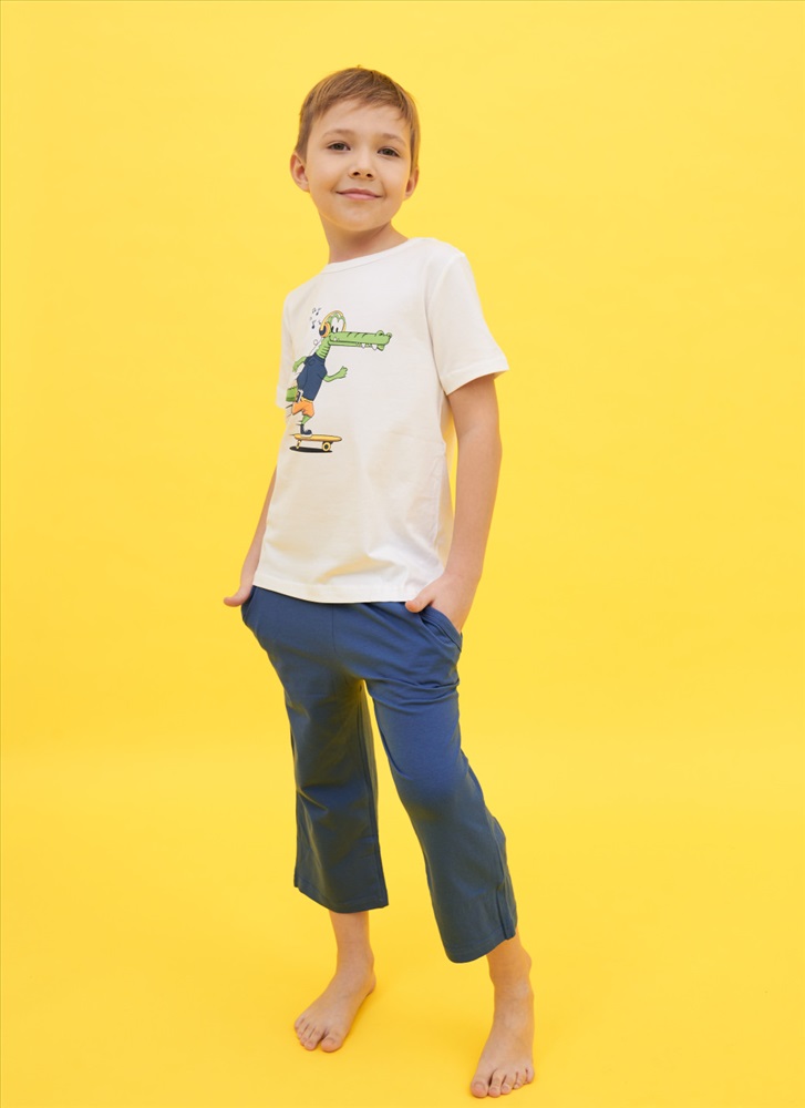 Стильный и уютный комплект домашней одежды приятных оттенков без утеплителя и начеса. Подойдёт как домашняя одежда, для сна и отдыха. Комплект состоит из футболки с коротким рукавом и удлиненных шорт, выполненных из мягкого трикотажа.