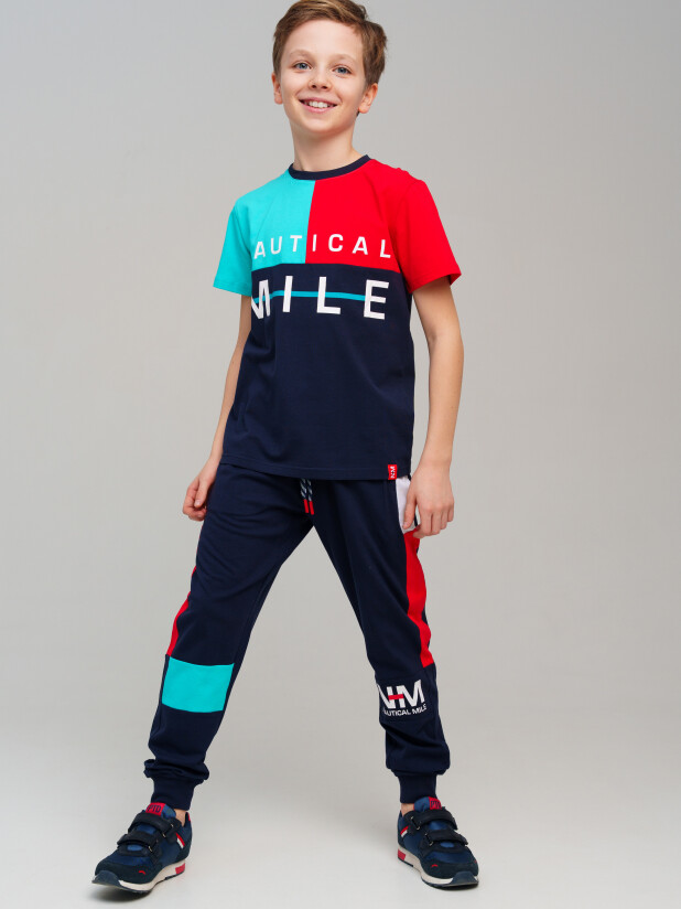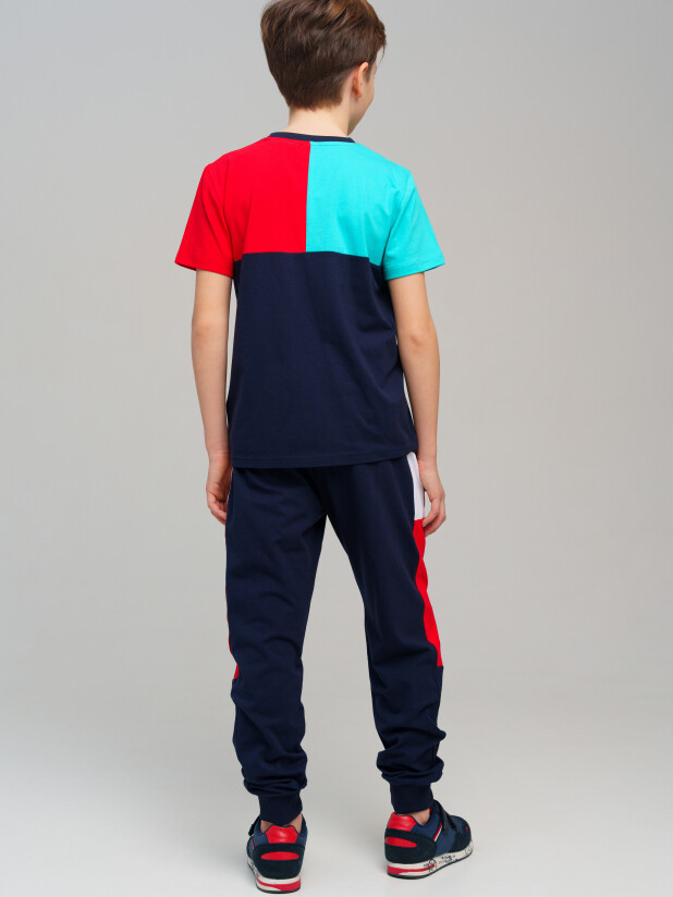 Костюм для мальчика подростка. Комплект: футболка, брюки. Высокое содержание хлопка 95%. Штаны на резинке со шнурком. Боковые карманы. Модель выполнена из качественного и приятного на ощупь трикотажа.
