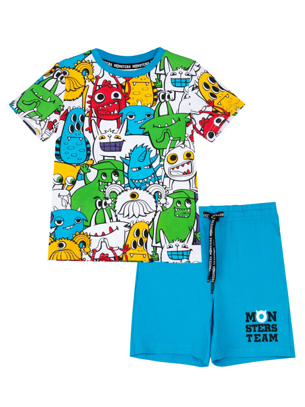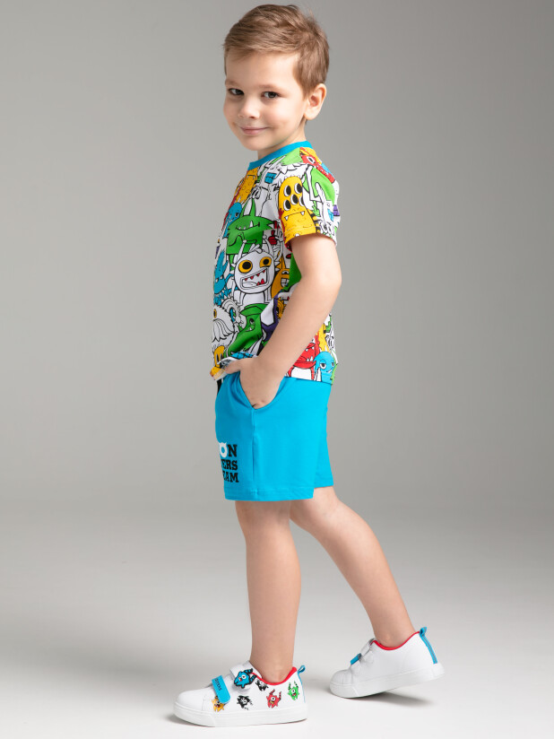 Комплект: футболка и шорты из качественного эластичного и приятного на ощупь трикотажа. Эластичный пояс со шнурком. Посадка regular fit – классический крой. Высокое содержание хлопка 95%. Благодаря наличию эластана в составе ткани изделие держит форму и меньше мнется.