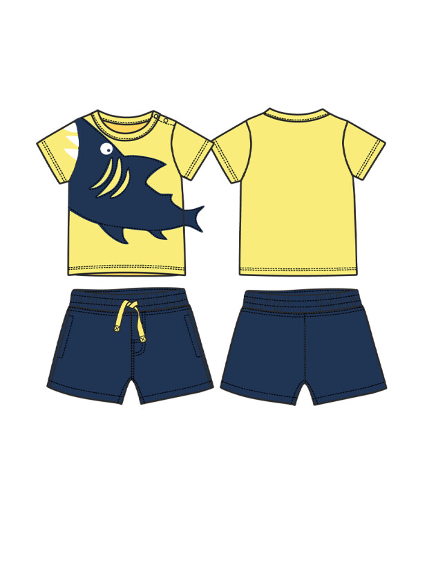 Комплект: футболка и шорты из качественного эластичного и приятного на ощупь трикотажа. Застежка на кнопки на плече. Нашивка спереди. Пояс со шнурком. Карманы в боковых швах. Высокое содержание хлопка 95%. Благодаря наличию эластана в составе ткани изделие держит форму и меньше мнется.