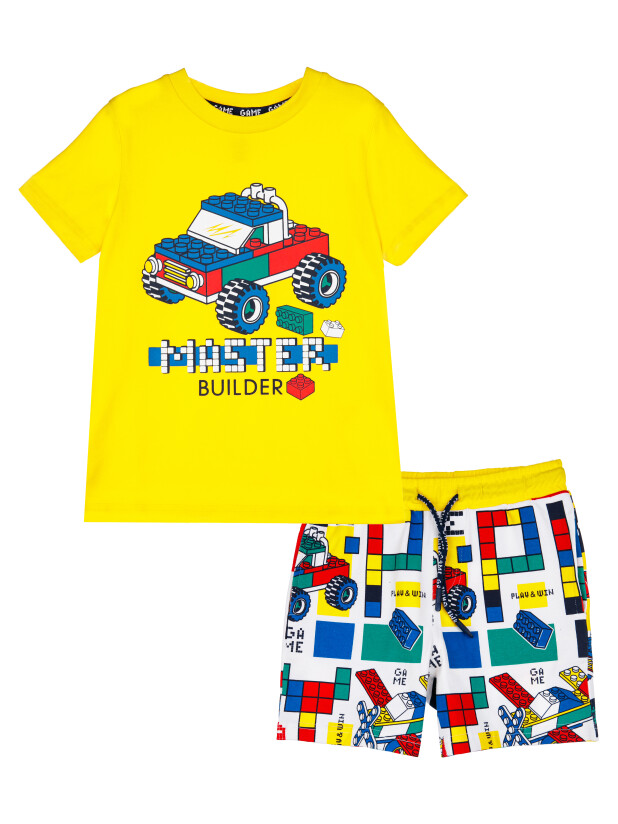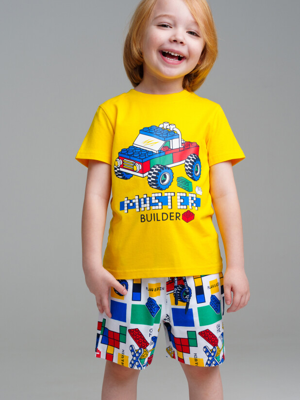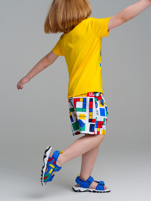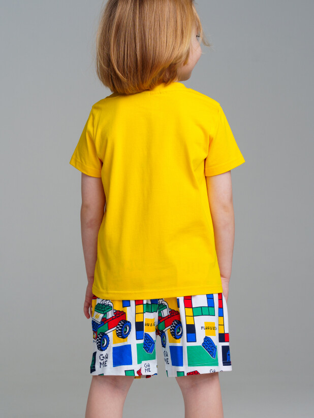 Комплект трикотажный: футболка, шорты. Высокое содержание хлопка 95%. Благодаря наличию эластана в составе ткани изделие проще в уходе и держит форму. Оптимальная посадка: шорты не сползают при движении. Эластичный пояс со шнурком. Карманы.