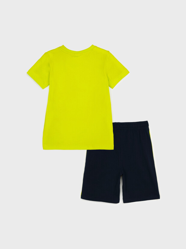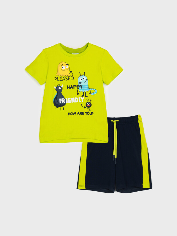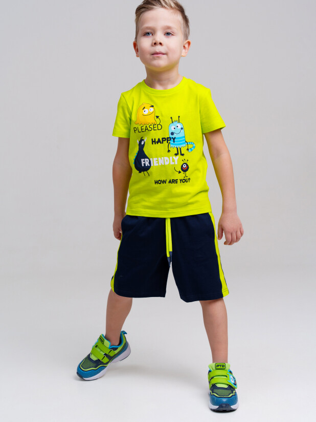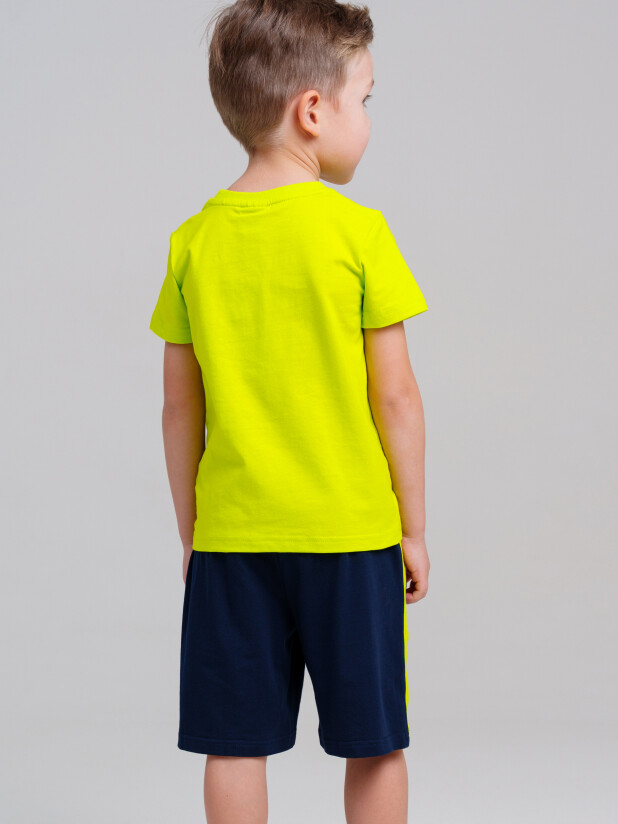 Костюм детский для мальчика. Комплект: футболка, шорты с высоким содержанием хлопка 95%. Благодаря наличию эластана в составе ткани изделие проще в уходе и держит форму. Шорты на резинке со шнурком. Боковые карманы.