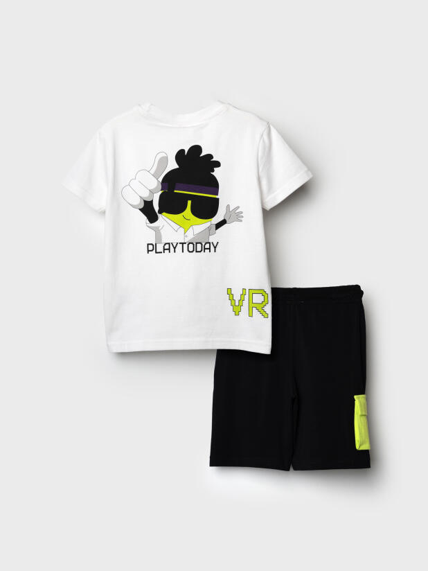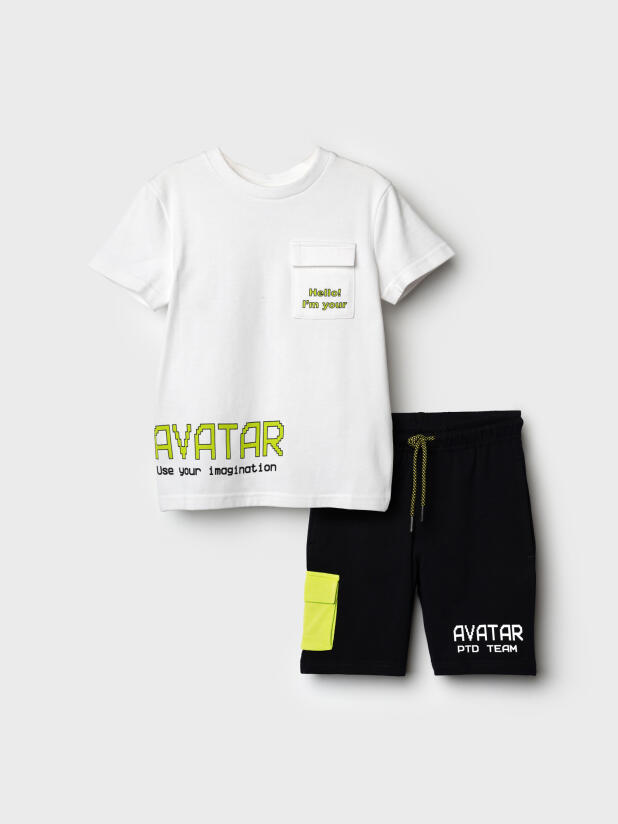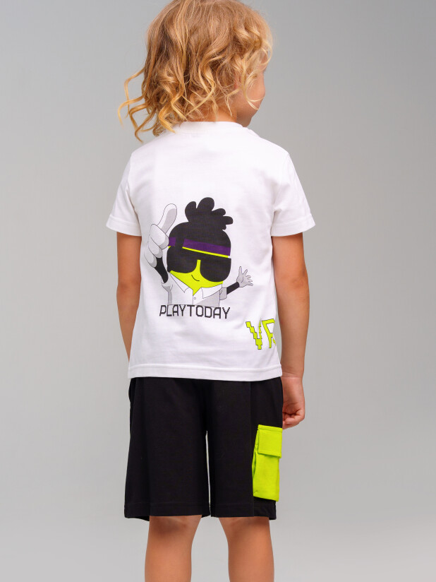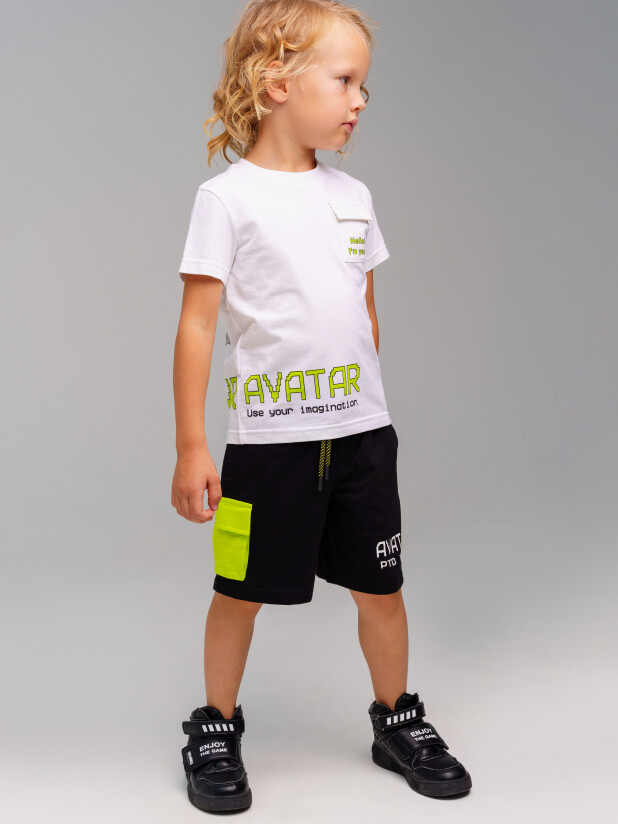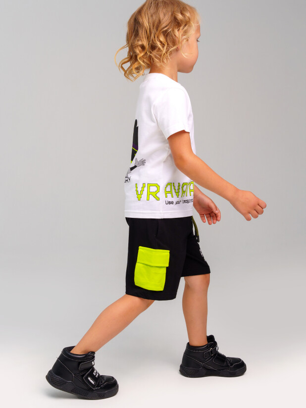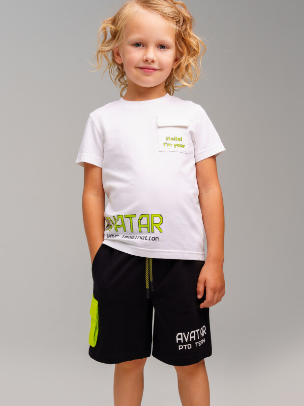 Костюм детский для мальчика: футболка, шорты. Футболка, шорты с высоким содержанием хлопка. Шорты на резинке со шнурком. Модель из капсульной коллекции VR AVATAR (ВИАР АВАТЭР). Соберите полный образ в едином стиле! Комплект будет актуален для детского