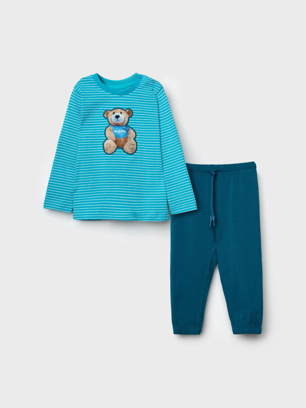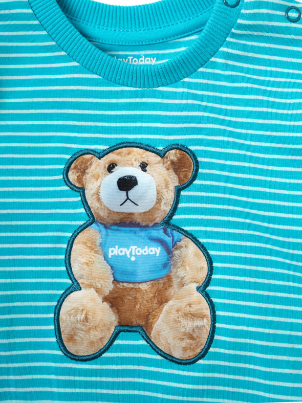 Детский трикотажный комплект для мальчика от PlayToday — яркий, удобный и практичный вариант на каждый день. В нём ребёнку будет комфортно и в детском саду, и дома, и на прогулке. Мягкая хлопковая ткань с эластаном тянется, дышит и не стесняет движений — идеальный выбор для активного малыша.