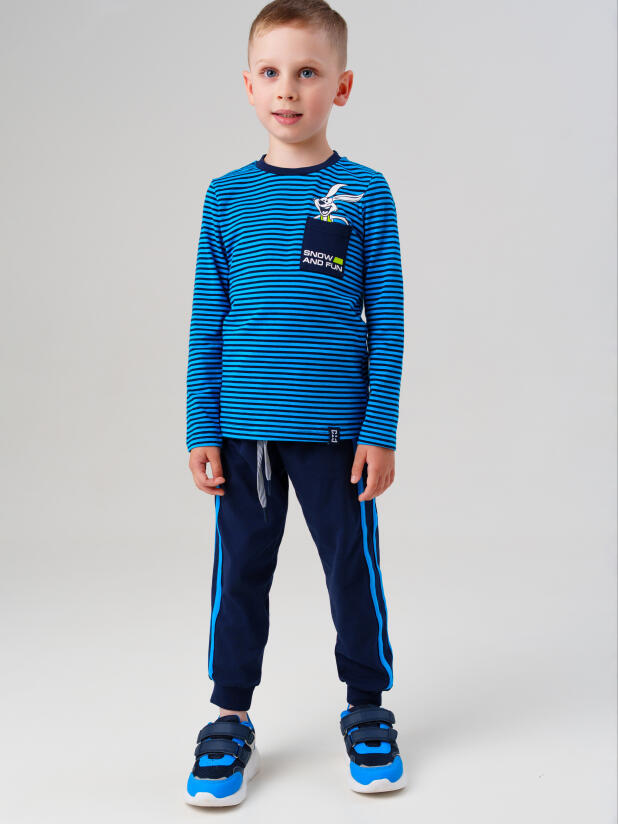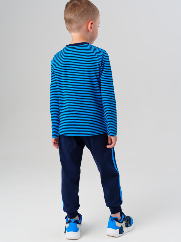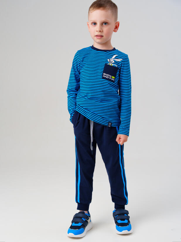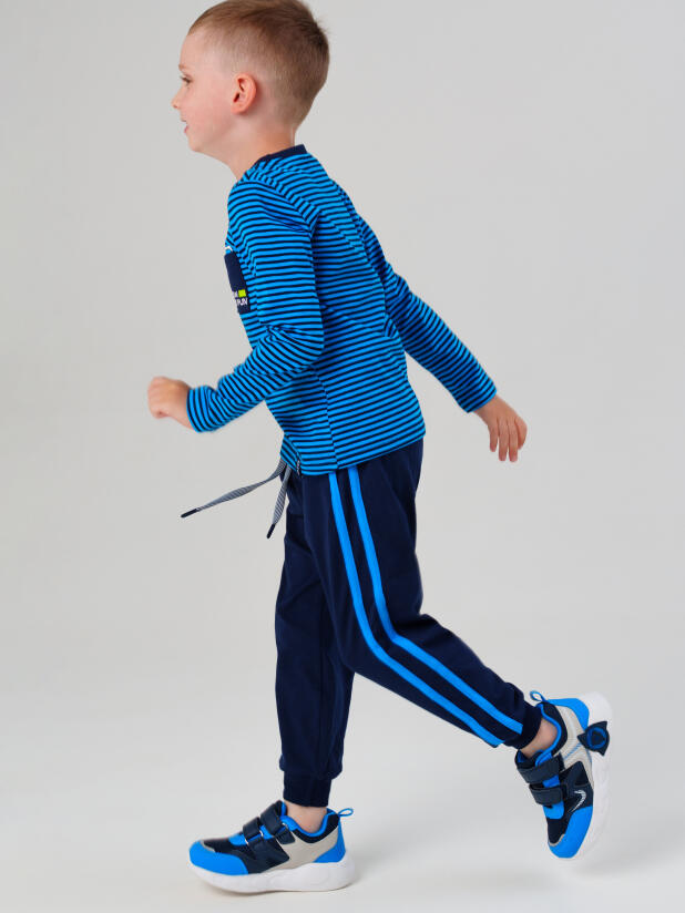 О товаре Детский трикотажный костюм для мальчика от PlayToday — это удобный и практичный образ, который подойдёт для детского сада, прогулок и активных игр. В комплект входят лонгслив в полоску и спортивные брюки на резинке, выполненные из мягкого хлопка с добавлением эластана. Натуральный материал приятен к телу, хорошо пропускает воздух и не сковывает движения ребёнка, а эластан обеспечивает комфортную посадку. Брюки дополнены эластичным поясом на шнурке для удобной регулировки, а манжеты по низу фиксируют брюки и не дают им задираться во время игр. Преимущества модели: + натуральный хлопок с добавлением эластана — ткань дышит, мягкая и приятная к телу, не вызывает раздражений + лонгслив в полоску с длинным рукавом — универсальная базовая вещь в гардеробе мальчика + брюки на резинке со шнурком — удобная посадка и регулировка по талии + манжеты на брюках — фиксируют низ и защищают от задирания + эластичный материал — не сковывает движения ребёнка во время игр и занятий спортом + универсальный дизайн — подходит для детского сада, прогулки, путешествий и занятий спортом Советы по стилю: Лонгслив в полоску гармонично сочетается с джинсами, шортами или спортивными брюками, что делает комплект универсальным решением для детского гардероба. Брюки можно комбинировать с худи, толстовкой или футболкой PlayToday. Такой костюм легко дополнить кроссовками или лёгкими ботинками для создания повседневного образа. Когда и как носить: Трикотажный комплект станет удобным вариантом для детского сада, ведь он не сковывает движения и подходит для активных занятий. На прогулке он обеспечит комфорт и свободу во время игр на свежем воздухе. В поездке это практичное решение: мягкая ткань и удобный крой делают комплект универсальным для дороги. Размеры: Модель представлена в размерах 98-122 для мальчиков дошкольного возраста. Модный и удобный трикотажный костюм для мальчика от PlayToday станет незаменимой частью гардероба и поможет создать стильный повседневный образ. СОСТАВ 95% хлопок, 5% эластан Уход Максимальная температура стирки 30°С. мягкий режим. Не отбеливать. Утюжить при температуре не более 110°С. Чистка запрещена. Не применять сушку в барабане. Стирать с вещами такой же окраски. Стирать вывернутым наизнанку. Не утюжить отделку. Предварительная стирка обязательна. Утюжить с изнаночной стороны. Бренд PlayToday АРТИКУЛ 32512242 Цвет Синий, Голубой Возрастная категория Дошкольники Пол Мужской Сезон Осень, Зима Год коллекции 2025 Страна бренда Германия Страна производства Китай Возраст 3 года, 4 года, 5 лет, 6 лет, 7 лет Маркировка Товары легкой промышленности и одежда Миниколлекция ALPIC