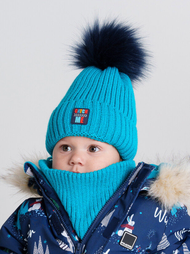 Шапка с завязками из трикотажа плотной вязки. Пряжа из акрила: легкая, теплая, гипоаллергенная. Шапка утеплена синтепоном. Подкладка из мягкого трикотажа с высоким содержанием хлопка 95%. Снуд в комплекте.