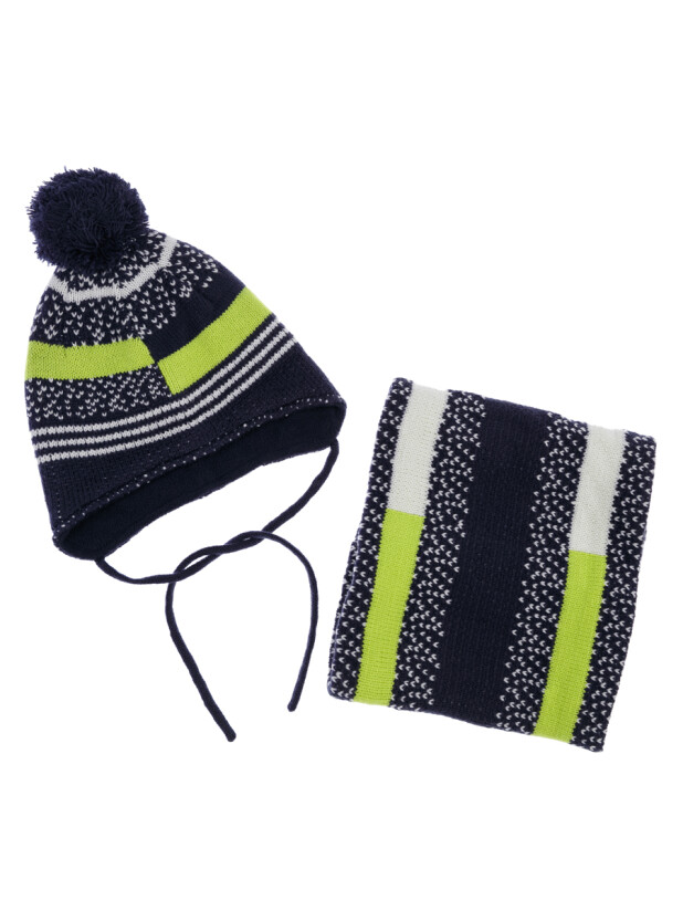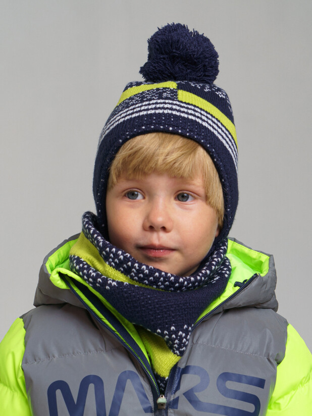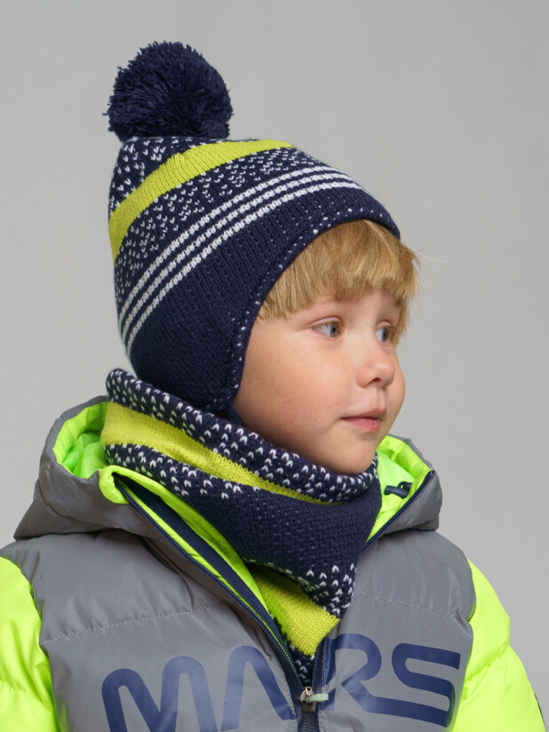 Комплект из вязаного трикотажа: шапка, снуд. Пряжа из акрила: легкая, теплая, гипоаллергенная. Подкладка из мягкого, теплого флиса. Помпон из ниток. При желании можно использовать завязки.