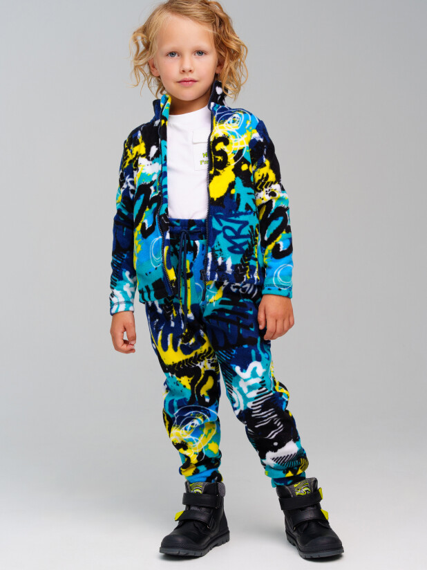 Комплект детский толстовка, брюки из флиса для мальчика. Линия NORD ( warm) – для повседневной одежды второго слоя в холодное время года. Плотность флиса 260 г/м2. Воротник-стойка. Манжеты с эластичной окантовкой. Клапан для защиты подбородка при застегивании молнии. Брюки на резинке со шнурком. Флисовая поддева идеально подходит под зимний мембранный костюм или комбинезон, в качестве второго слоя в трехслойной концепции одежды для зимы. Основная функция поддевы из флиса – удерживать тепло и передавать пар от первого слоя – термобелья, оставаясь сухим. Флис – мягкий, теплый, легкий и неприхотливый материал, способный сохранять тепло и в сухом, и в мокром виде, комфортный и гипоаллергенный. Детские яркие модели из флиса отличаются стильным дизайном и комфортным кроем, который не сковывает движений ребенка. К тому же, они быстро сохнут и легко стираются, что делает их идеальными для повседневного использования в холодное время года.