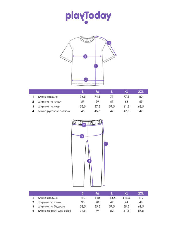 Футболка: 95% хлопок, 5% эластан; Брюки: 100% хлопок
