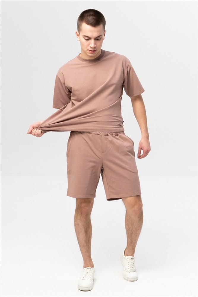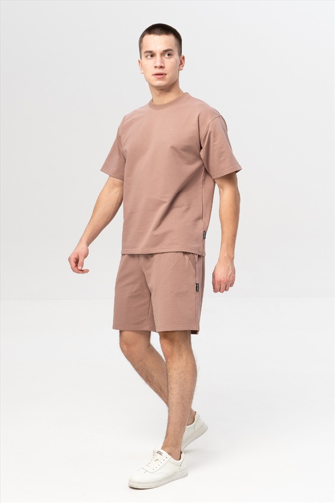 Производитель: POL`MOTIVE Код товара: 23-422M3-WB Состав: х/б - 65 %; л. - 10 %; ПА - 25 % Вид полотна: Футер 2-х нитка цвет: капучино Коллекция: BASE Мужской костюм из хлопкового футера, состоящий из футболки и шорт. Футболка оверсайз, чуть спущенное плечо, рукава короткие прямые, вырез горловины круглый. Шорты чуть выше колен объемные с карманами в боковых швах, с мягкой резинкой на талии и высокой комфортной посадкой и с регулируемым шнурком. Их универсальность позволяет прекрасно сочетаться с любым верхом. Рост модели на фотографии 176 см. размер одежды 48 Длина джемпера по середине спинки 46 размер 69 см. 48 размер 69 см. 50 размер 69 см. 52 размер 69 см. 54 размер 71 см. 56 размер 71 см. 58 размер 71 см. 60 размер 71 см. Длина шорт по боковому шву 46 размер 52 см. 48 размер 52 см. 50 размер 52,5 см. 52 размер 52,5 см. 54 размер 52,5 см. 56 размер 52,5 см. 58 размер 52,5 см. 60 размер 52,5 см.