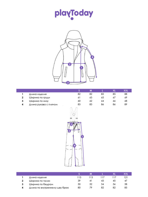 Утеплитель: куртка: 160 г/м2, брюки: 100 г/м2