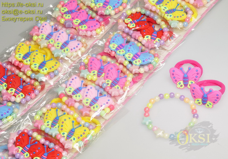 Цена за комплект; резинки для волос и браслет. Дизайн и цвет в ассортименте.