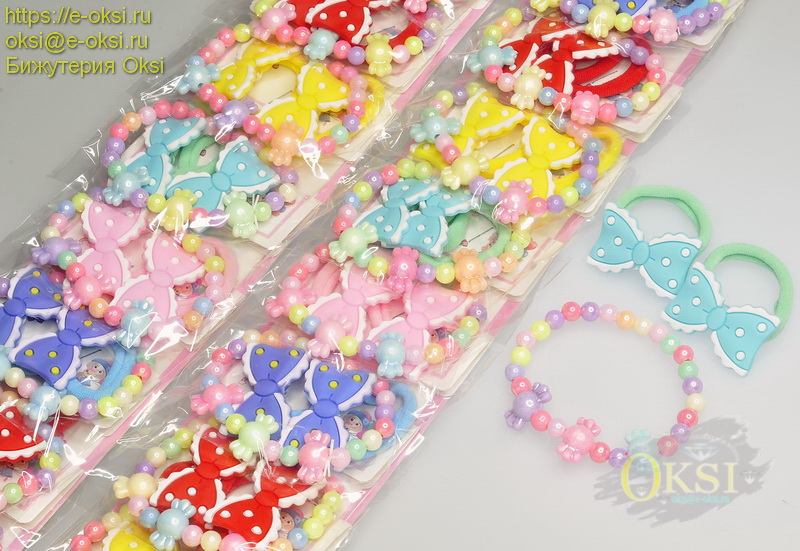 Цена за комплект; резинки для волос и браслет. Дизайн и цвет в ассортименте.