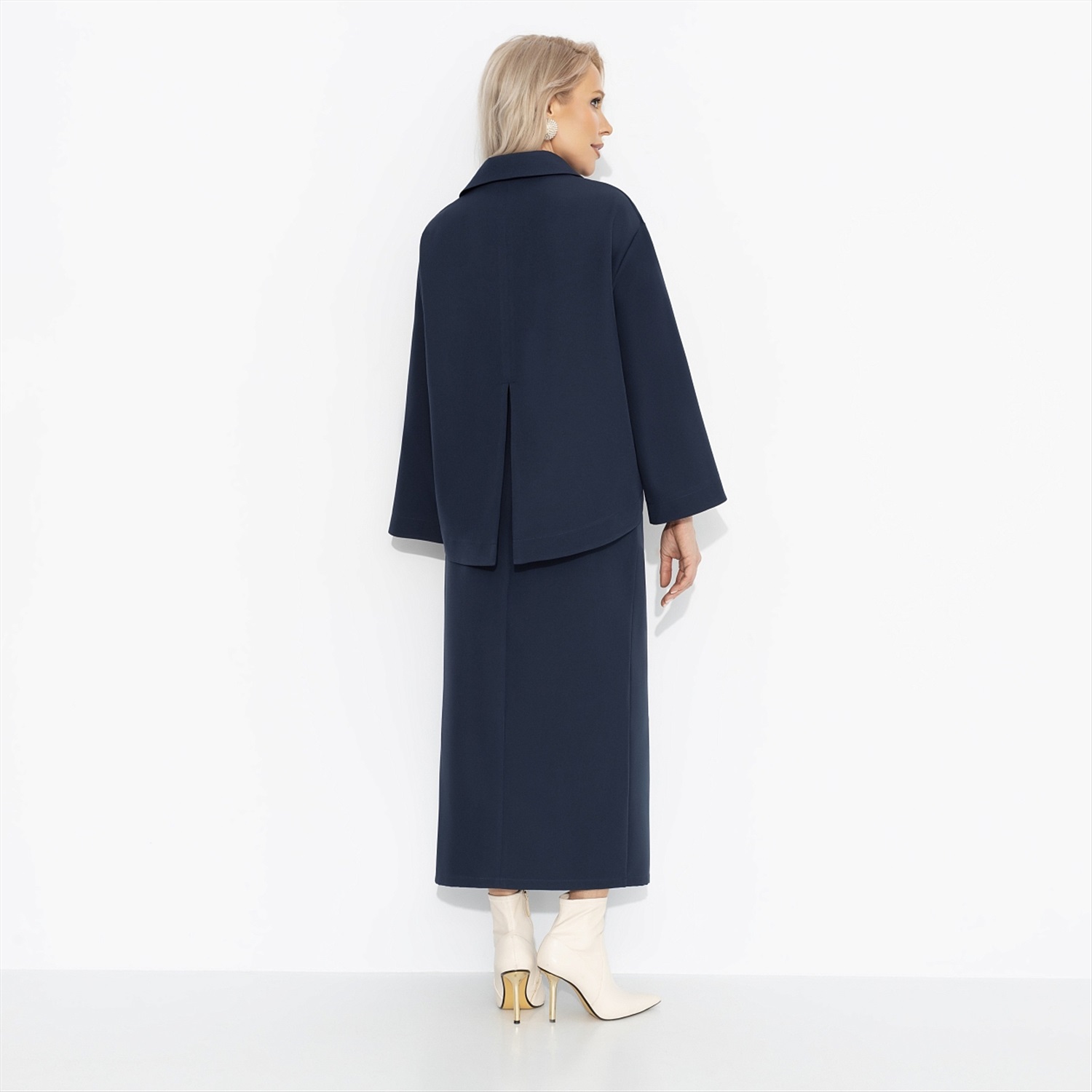 Оттенок темного индиго – для зимнего офиса, где важна уверенность в каждом движении. Костюм ЧАРУТТИ поможет легко привлекать внимание партнёров и инвесторов, вести важные переговоры и быть магнитом для деловых перспектив. Строгий крой и длина подчеркивают профессионализм, но пространство для индивидуальности и комплиментов остаётся.