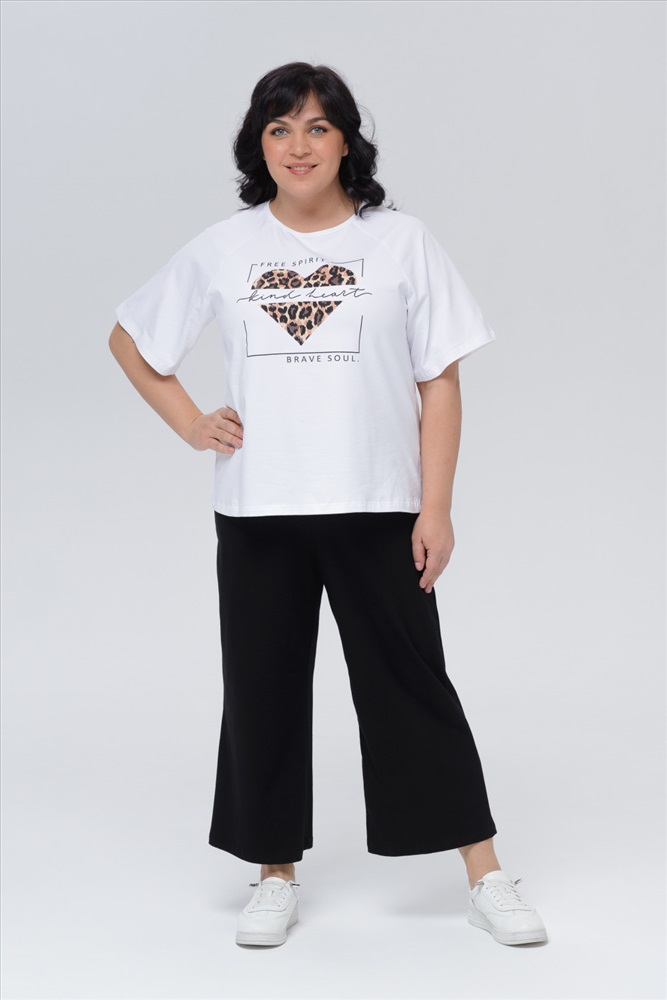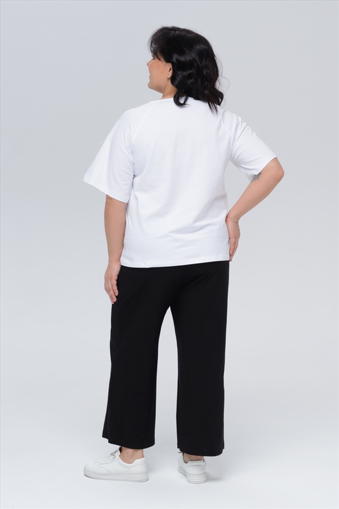 Идеальный пижамный комплект для сна и домашнего отдыха выполнен из высококачественного гипоаллергенного материала — натурального хлопка с лайкрой. Футболка полуприлегающего силуэта с рукавами реглан, а брюки чуть свободные, длиной ниже колена не сковывают движения и обеспечивают максимальный комфорт во время носки. Натуральный хлопок в составе материала комплекта приятно прилегает к телу и дарит ощущение абсолютного комфорта.