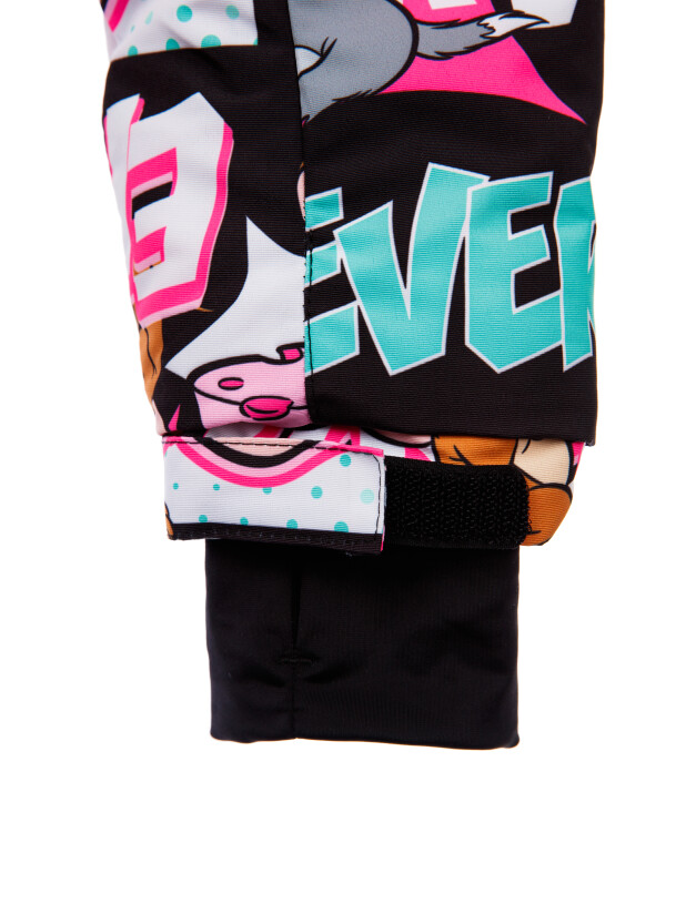 Мембранный материал делает этот яркий и модный комбинезон непромокаемым: мембрана не пропускает влагу снаружи, но выводит её изнутри, что крайне важно во время подвижных игр и занятий спортом.