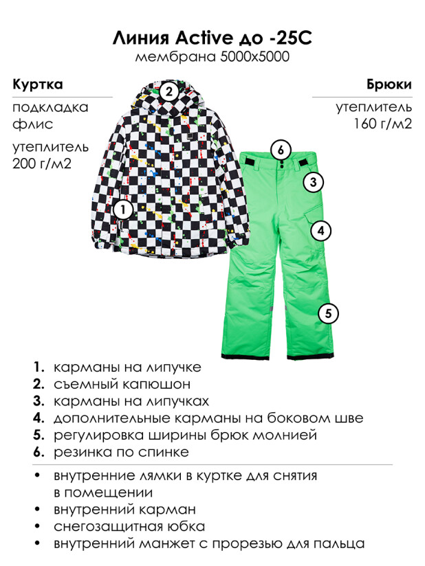 Зимний горнолыжный костюм для мальчика подростка. Особенности модели: Линия Active; Температурный режим до -25С; мембрана 5000х5000, Куртка: подкладка - флис;