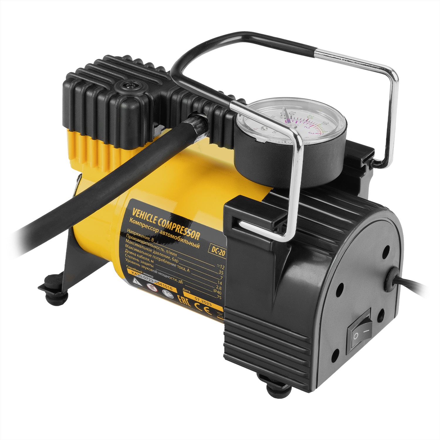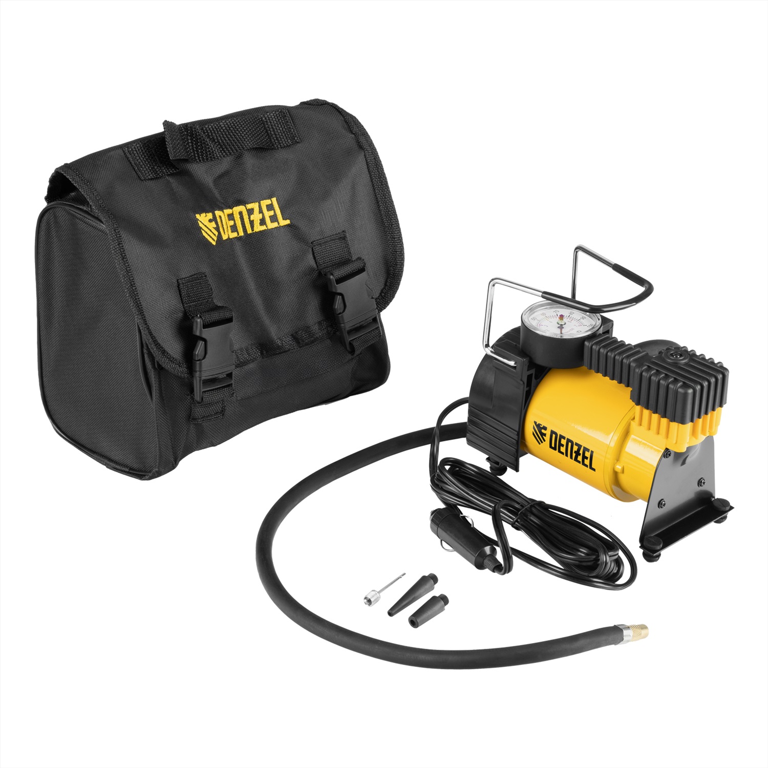 Автомобильный компрессор Denzel DC-20 58054 производительностью 35 л/мин работает от источника питания 12 В, создает давление 7 атмосфер и используется для быстрого накачивания шин автомобильных колес. Благодаря увеличенной мощности на подкачку колеса R16 потребуется не более 4-5 минут. Компрессор также подойдет для накачки мячей, надувных лодок, тюбингов и прочего снаряжения. Устройство не требует технического обслуживания и незаменимо в поездке или во время отдыха на природе.