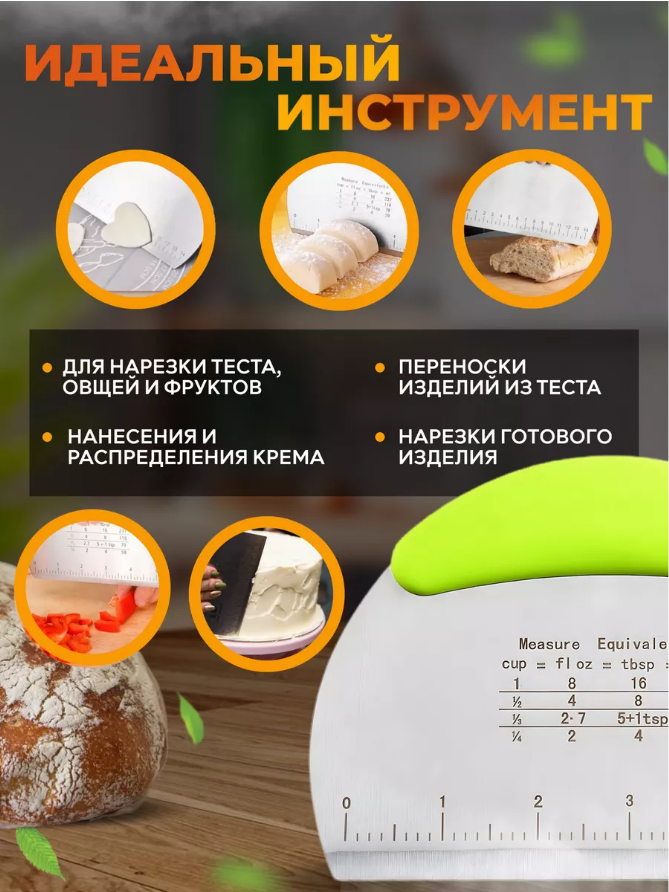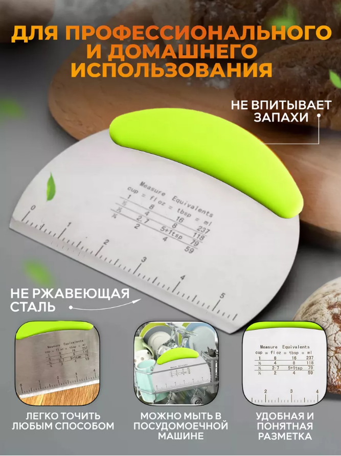 Кондитерский нож для резки теста - одна из тех универсальных кухонных принадлежностей, которые облегчат множество задач не только кондитеру, но и любому повару в приготовлении блюд. Его удобно использовать как шпатель для выравнивания торта, ножик для нарезки пиццы, овощей и фруктов. Тесторезка фигурная выполнена из качественного металла нержавеющей стали, к которому не прилипают ингредиенты, легко моется. Металлический резак подходит для работы на силиконовом коврике, как скребок он отлично собирает остатки муки с поверхности. На обеих сторонах имеется разметка для точности в процессе выпечки, эргономичная ручка позволяет надежно удерживать изделие в руке.