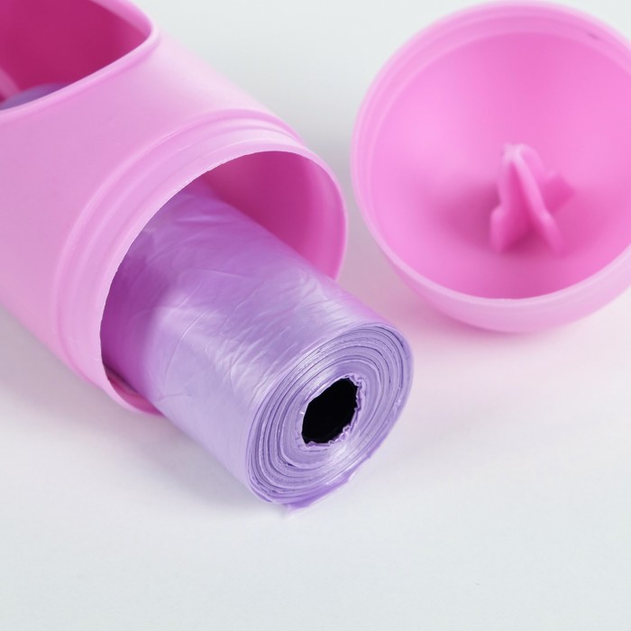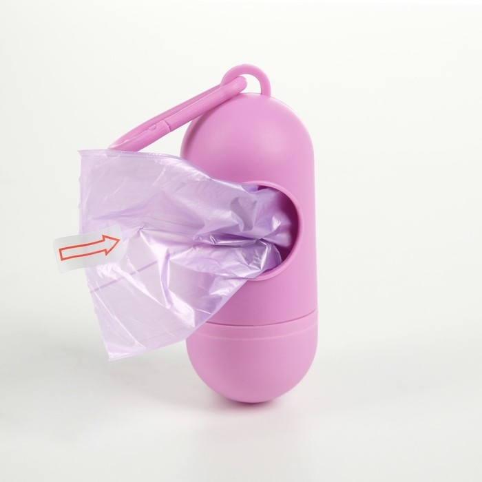 Контейнер с пакетами для уборки за собаками (рулон 15 пакетов 29х21 см), фиолетовый