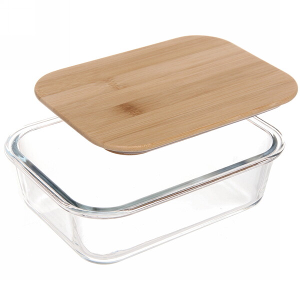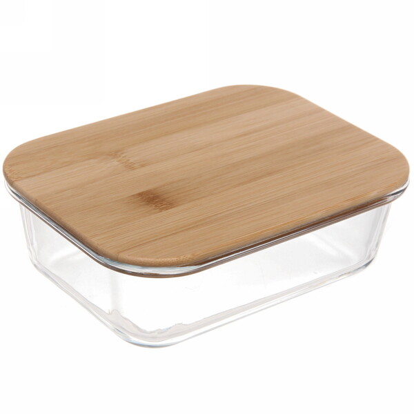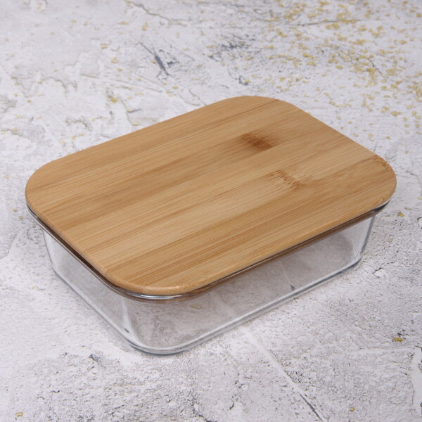 Контейнер стеклянный 1000мл "Хай-Тек" прямоугольный с бамбуковой крышкой