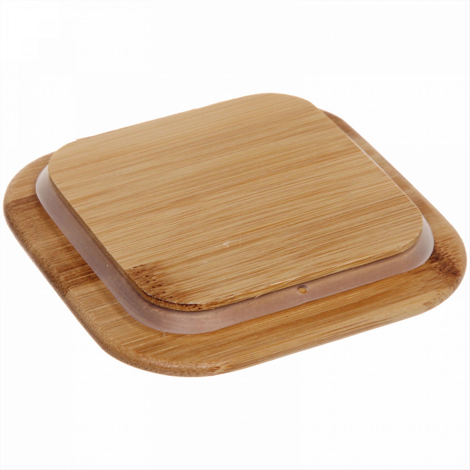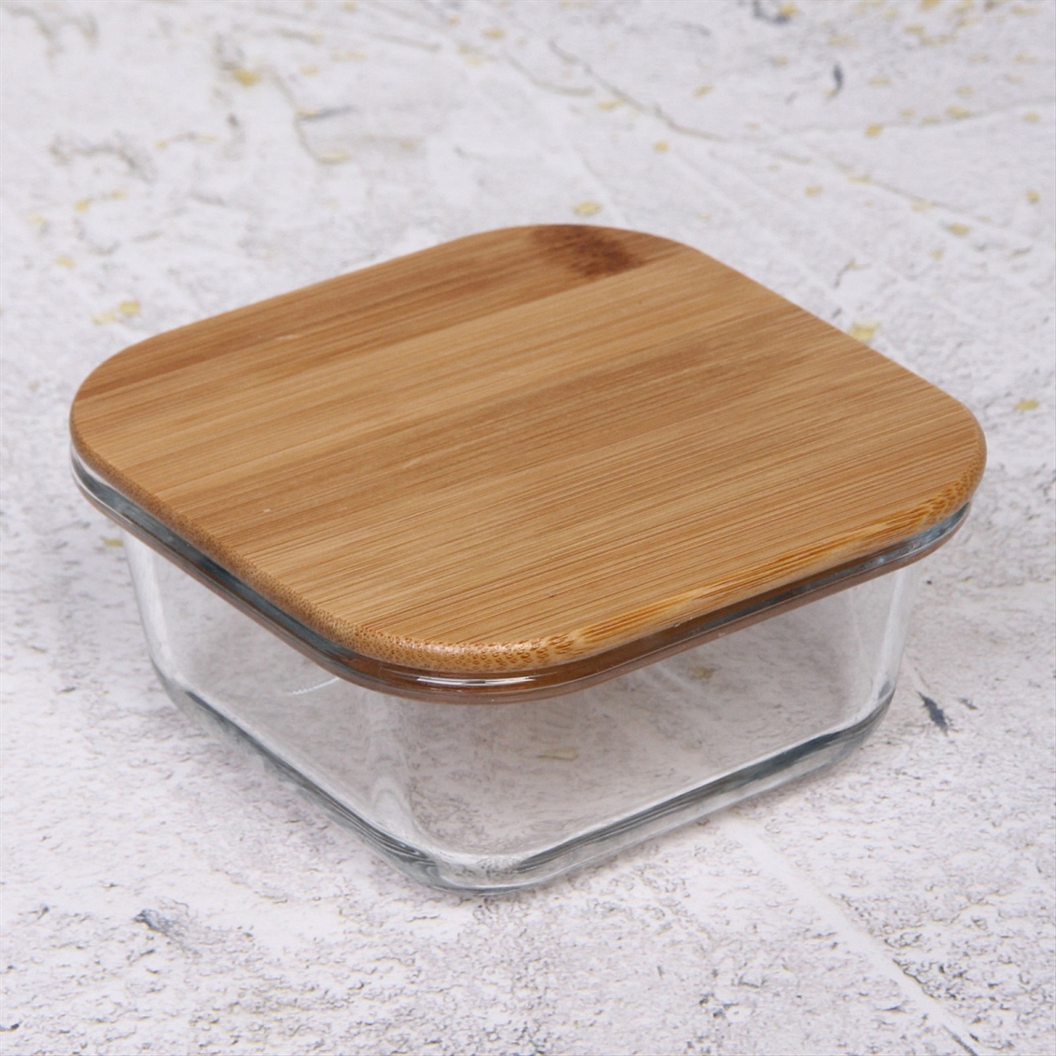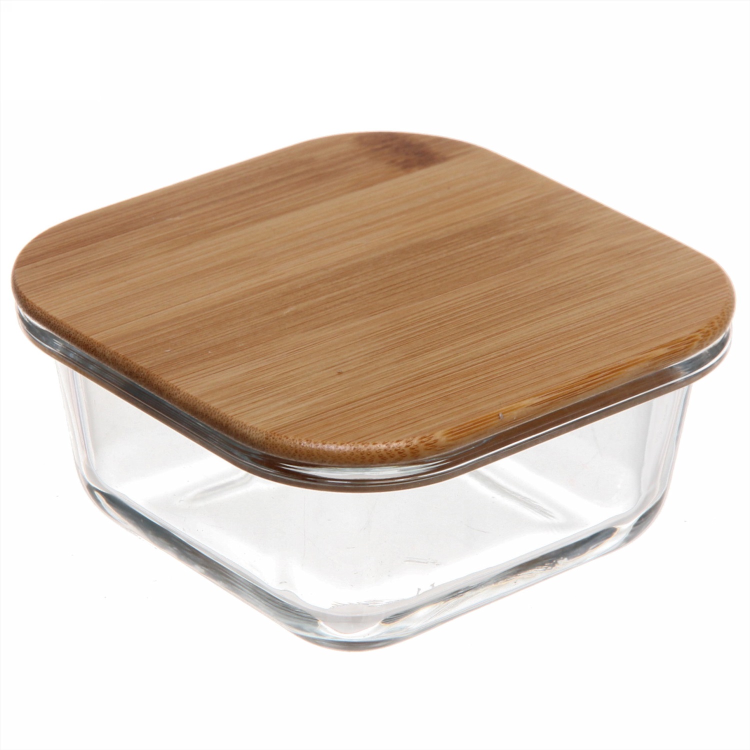 Контейнер стеклянный 300мл "Хай-Тек" квадратный с бамбуковой крышкой