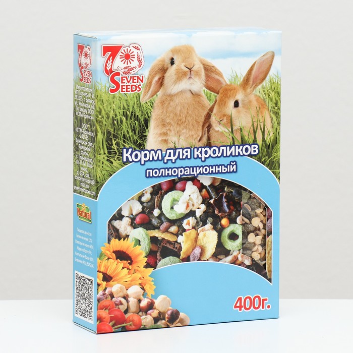 Производитель: Seven Seeds; Габариты: 18,8 x 13 x 3,5; Страна: Россия; В боксе: 12 шт; Состав: См. на упаковке; Материалы: см. на упаковке; Фасовка: по 1 шт; Индивидуальная упаковка: Без упаковки; Сертификат: СТР; Вес, г: 400; Особенности корма: Основной; Вид: Смесь; Назначение: Для кроликов; Возраст: Для всех возрастов; Темпер. ограничение НЕ НИЖЕ ℃: +1; Темпер. ограничение НЕ ВЫШЕ ℃: +30; Меркурий: Да