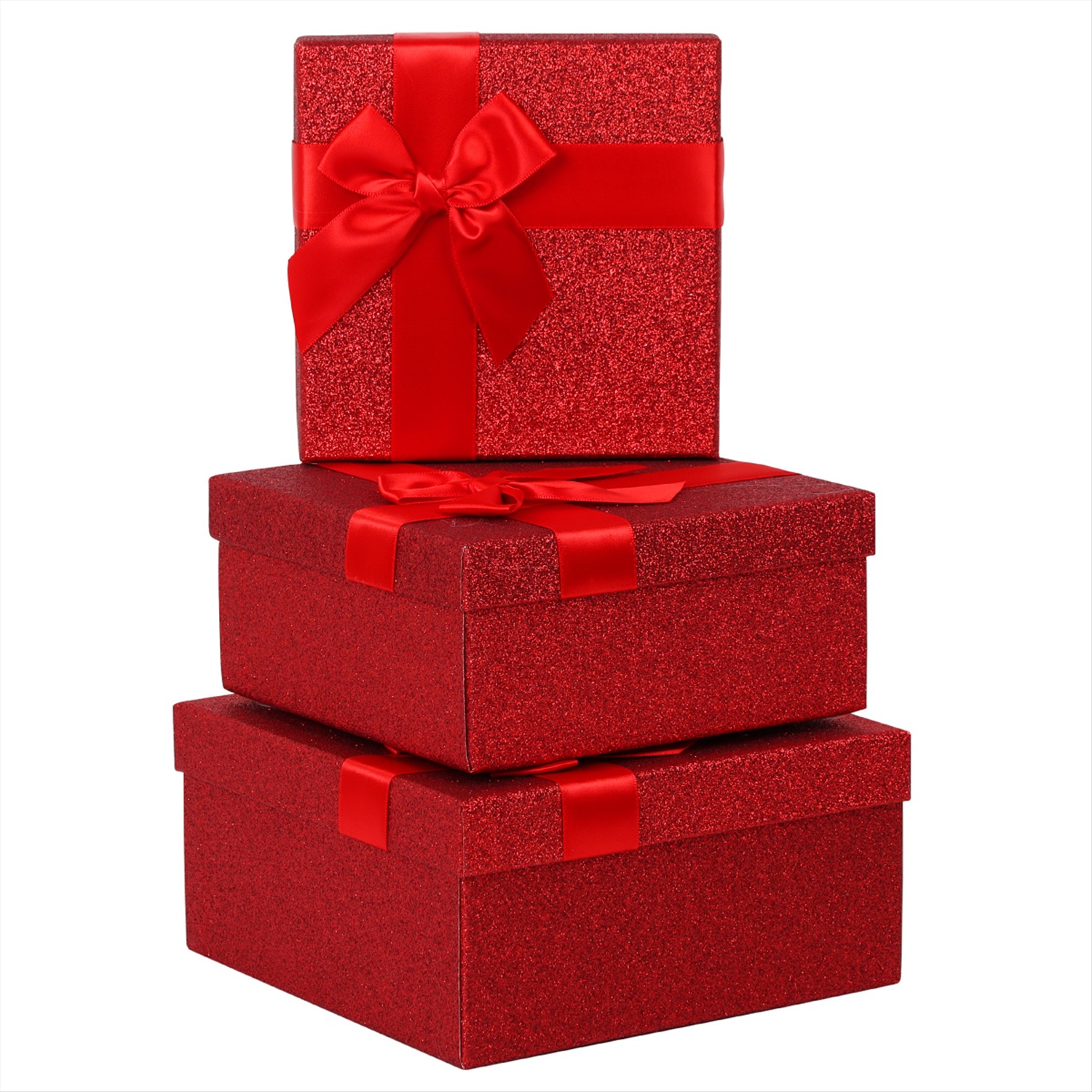 Коробка подарочная 15,5*15,5*6,5см красный с блестками КОКОС 232217/Китай