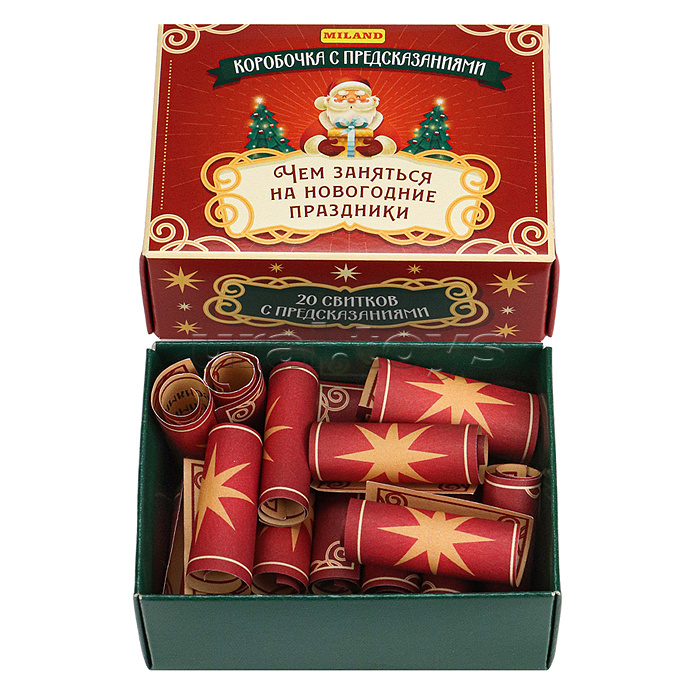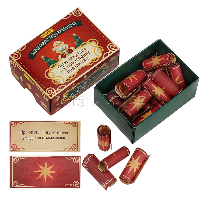 Наличие: >10 Фанты с веселыми заданиями для сей семьи подарят вам незабываемую новогоднюю ночь! Добрые пожелания настроят на праздничную волну и станут сюрпризом для праздничного вечера, а веселые задания помогут скрасить время ожидания нового года. Коробочка с предсказаниями это как печенье с предсказаниями, только без печенья! Комментарии к товару