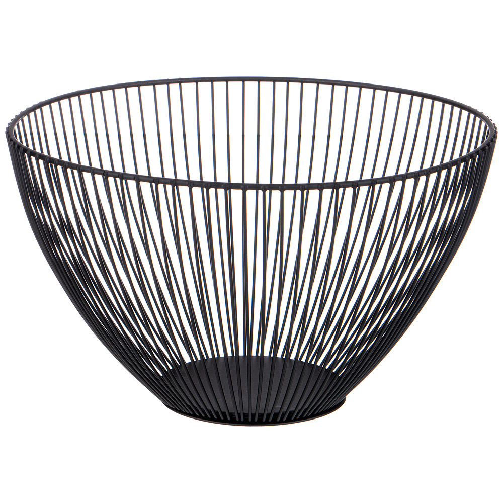 Корзина для фруктов металлическая - это универсальное интерьерное решение для гостиной, кухни, офиса, ресторана или отеля. Круглая корзинка из металла черного цвета имеет оригинальный геометрический дизайн и идеально впишется в разные стили интерьера. Блюдо для подачи фруктов запомнится Вашим гостям и будет настоящим украшением любого праздничного стола.