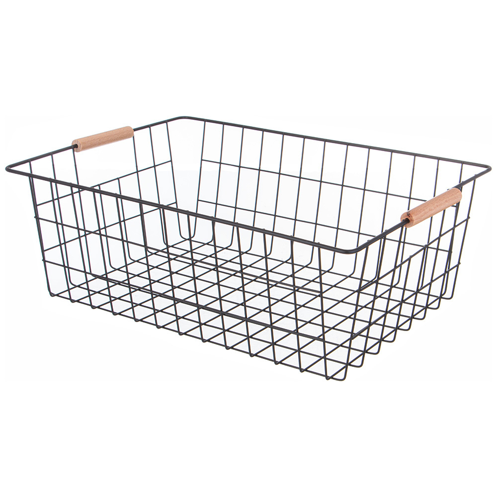 КОРЗИНА С ДЕРЕВЯННЫМИ РУЧКАМИ ЧЕРНАЯ 42*30.5*15.5 СМ (КОР=12ШТ)