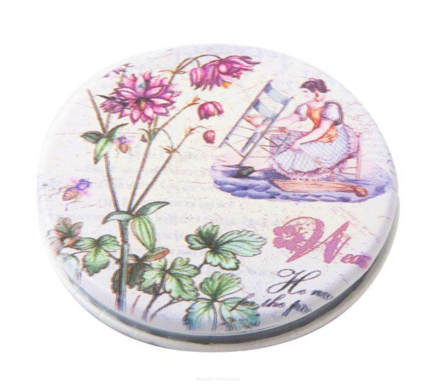Корпус аксессуара имеет оригинальное тематическое исполнение в нежных тонах. Зеркало представлено в круглой форме, его удобно и безопасно хранить в кармане, а надёжный механизм запирания не позволит зеркалу случайно открыться.