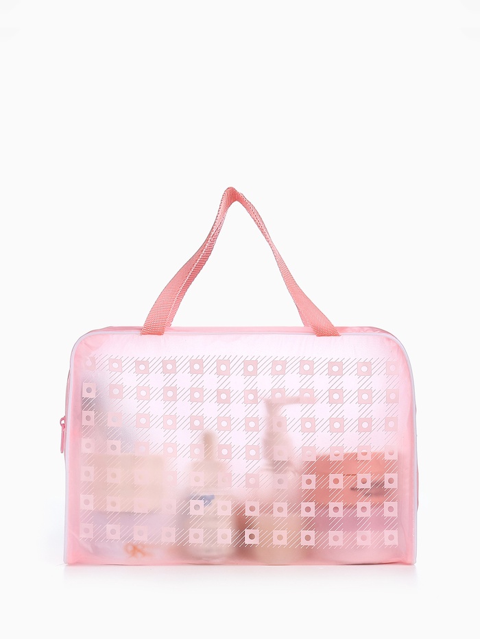 [Картинка122]Эта розовая косметичка для бассейна — практичный и стильный аксессуар для ваших водных процедур. Её геометрический принт добавляет образу игривую нотку, а надёжная молния и водонепроницаемый материал ПВХ надёжно защитят всё необходимое: от солнцезащитного крема и очков до сменного белья и гаджетов. Просторное основное отделение и удобные ручки делают её идеальным спутником для похода в спа-салон, на пляж или в фитнес-клуб.