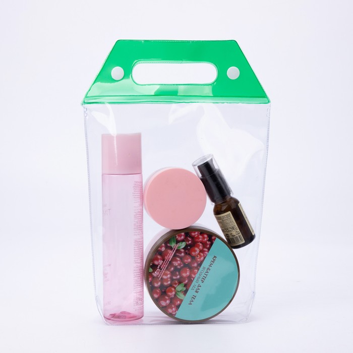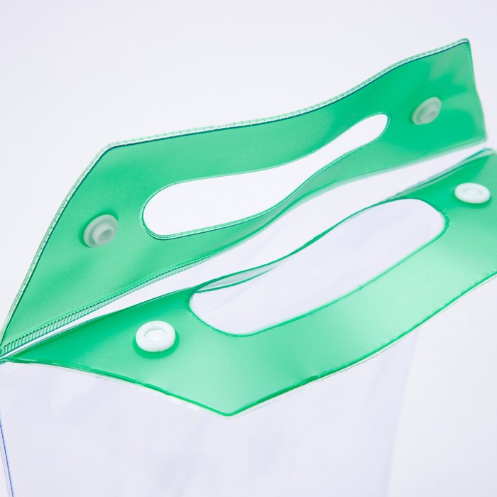 Водонепроницаемая косметичка с зелёными акцентами это решение для бассейна и пляжного отдыха. Прозрачный ПВХ-материал обеспечивает защиту от влаги, сохраняя при этом видимость содержимого.