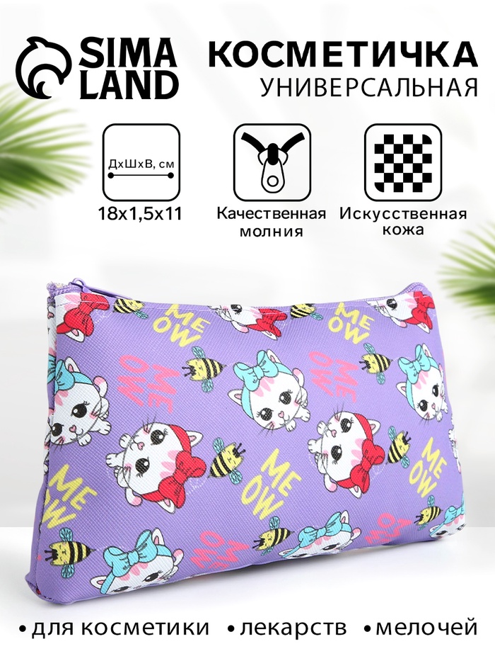 Габариты: 18 x 11 x 0,5; Страна: Китай; В боксе: 1052 шт; Состав: Искусственная кожа; Материалы: искусственная кожа; Фасовка: по 1 шт; Индивидуальная упаковка: Пакет; Габариты товара: 18 см × 1,5 см × 11 см; Сертификат: ЕАС; Цвет: Сиреневый; Для кого: Для женщины, Для девочки; Длина, см: 18; Ширина, см: 1,5; Высота, см: 11; Количество отделений: 1; Вид застёжки: Молния; Тематика: Животный мир; Рисунок: Да; Материал: Искусственная кожа; Количество отделений: 1; Особенности: Плоский; С наполнением: Нет; Размер: Маленький; Особенности косметичек: С рисунком; Фиксированная цена: Да; Количество отделений: 1 отделение