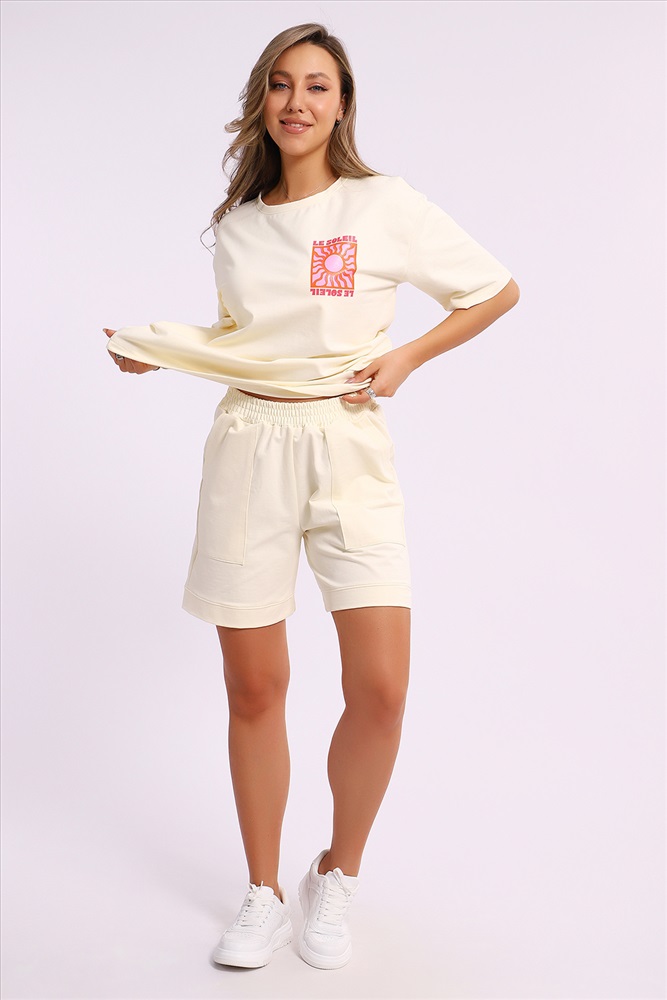 Состав: 70% хлопок, 24% п/э, 6% лайкра Модель: Костюм 21069 Тип товара: костюм с шортами Материал: футер с лайкрой 2-х нитка | футер с лайкрой 2-х нитка Бренд: Натали Суслова Карман: боковые Особенности: на резинке Отделка: с карманами | с печатью Посадка: высокая посадка Рисунок: разное Рукав: короткий рукав Сезонность: лето | весна Силуэт: прямой | свободный Стиль: повседневный Воротник: без воротника Застежка: без застежки Костюм состоит из футболки и шорт. Футболка свободного кроя с короткими рукавами на спущенном плече. Шорты с накладными карманами и манжетами. Таблица размеров и весафутболка