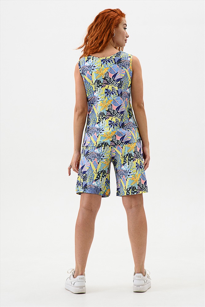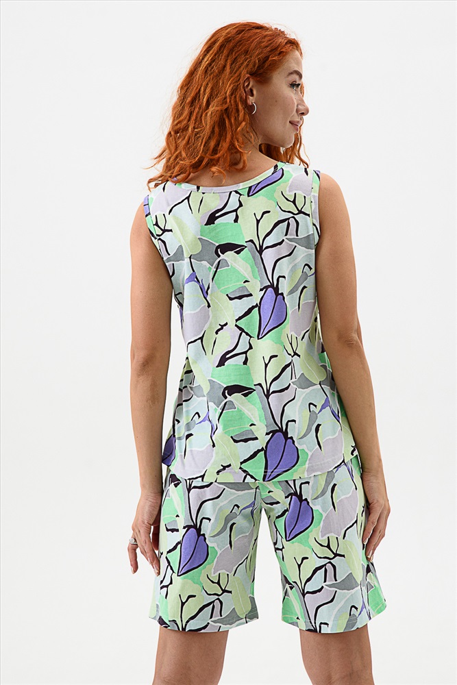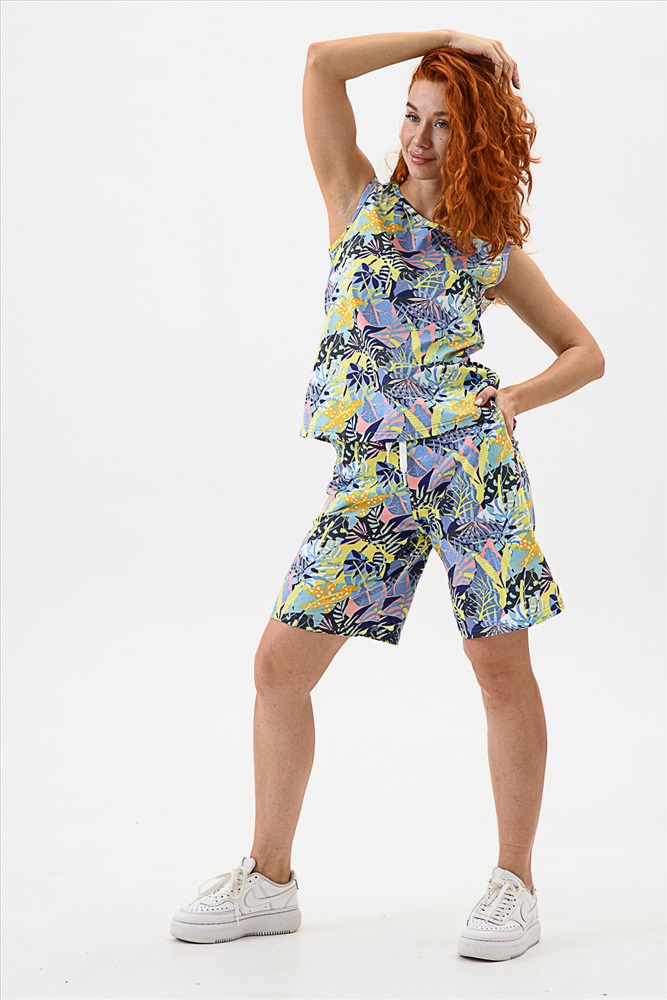 Состав: Хлопок 100% Модель: Костюм №21607 Тип товара: костюм с шортами Материал: кулирка | кулирка Бренд: Натали Суслова Карман: боковые Назначение: для пляжа Особенности: на резинке Отделка: с карманами | со шнурком Посадка: высокая посадка Рисунок: цветы Рукав: без рукава Сезонность: лето Силуэт: прямой | свободный Стиль: пляжный | повседневный Воротник: без воротника Застежка: без застежки Костюм летний, состоящий из майки с боковыми разрезиками и шортиков с боковыми кармашками. Пояс регулируется шнурочком. В этом костюме можно гулять, на пляж, в путешествие.... В измерениях майки длина указана от плеча. Носите с удовольствием. Таблица размеров и весаМайка
