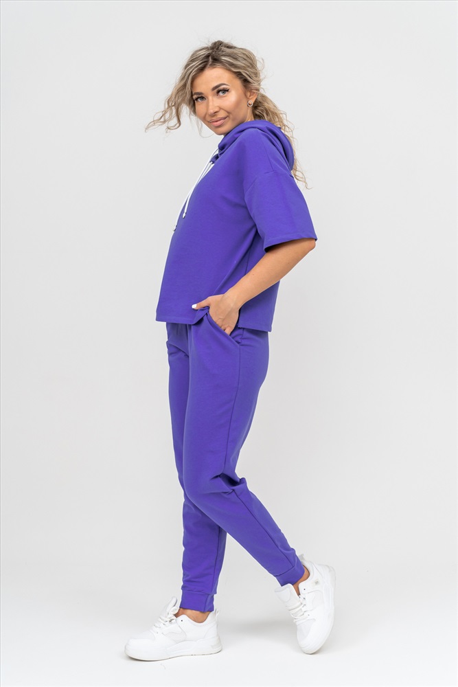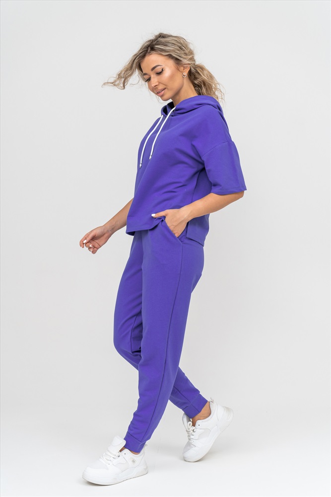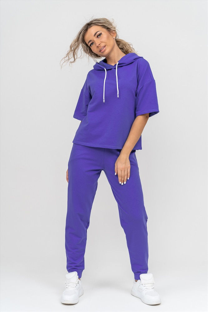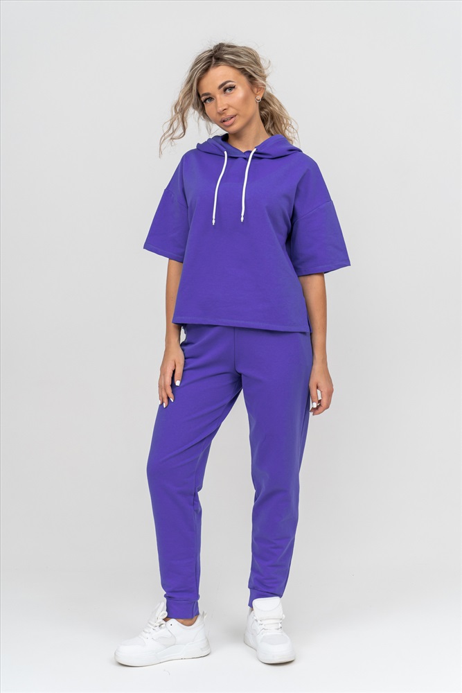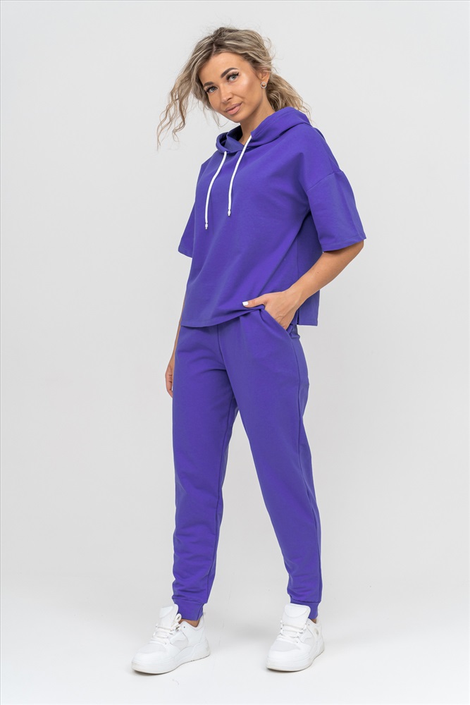 Женский костюм выполнен из футера высокого качества с хлопком и небольшим добавлением полиэстера и лайкры, что позволяет изделию не скатываться и оставлять идеальный внешний вид на долгое время. Костюм состоит из толстовки и брюк. Толстовка с капюшоном и шнурком. Линия плеча спущена, рукав укороченный, по бокам имеются небольшие разрезы. Брюки представлены с вместительными боковыми карманами. Манжеты брюк выполнены из основного материала, а пояс на специализированной поясной машине, что делает швы ровными и качественными. Свободный крой прекрасно будет смотреться на дамах с любыми формами. Костюм такого плана представлен в широкой размерной сетке, что позволяет выбрать его как девушке, так и женщине. Однотонный костюм модных расцветок будет удачным выбором для поездок в отпуск, на пикник, для школы, для активного отдыха и прогулок по городу. Будет гармонично сочетаться как с кроссовками, так и с туфлями, балетками или босоножками. Используя эту модель в качестве домашнего костюма, Вы поймёте, что это именно тот самый идеальный вариант, в котором будете себя чувствовать удобно, комфортно и современно. Костюм с брюками - это настоящая находка для тех, кто ценит свою индивидуальность!