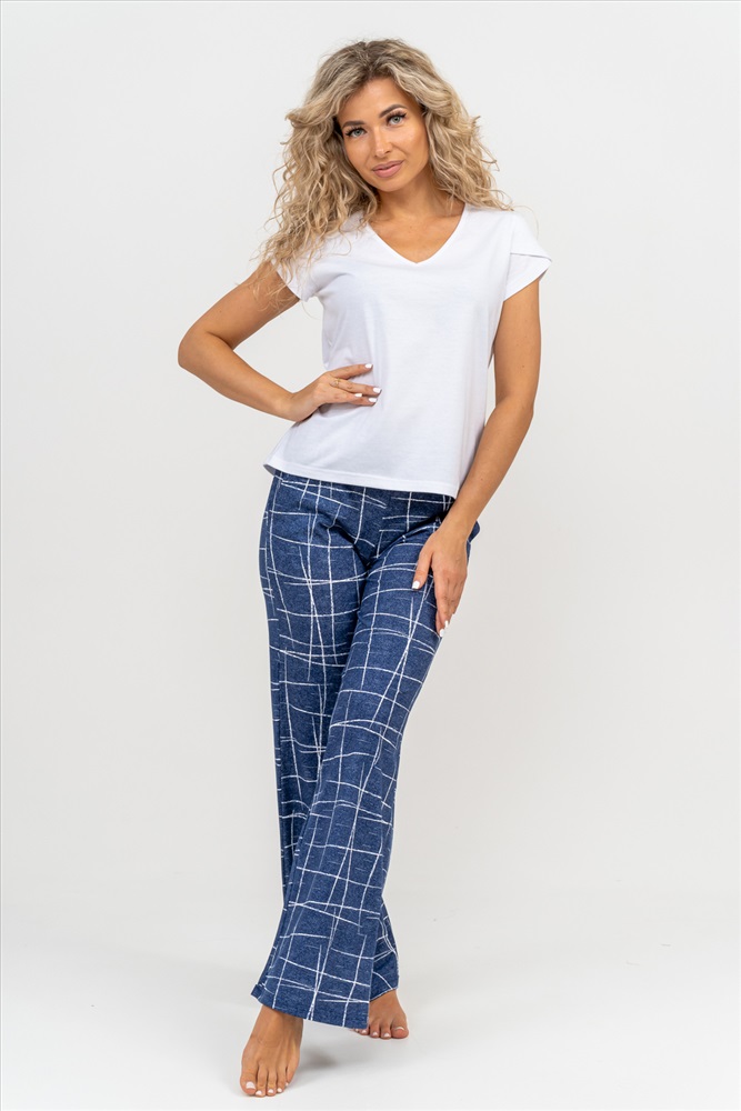 Женский стильный костюм состоит из футболки и брюк. Футболка выполнена из приятного к телу хлопчатобумажного полотна. V - образный вырез горловины и рукав с двойным крылышком идеально смотрится с брюками завышенной линии талии. Брюки - трубы в свою очередь выполнены из дышащего 100% хлопчатобумажного полотна. А вместительные боковые карманы, удобный и качественно обработанный на специальной машине пояс, позволит Вам чувствовать себя комфортно и уверенно. В костюме Вы можете отдохнуть на природе, на море, на даче, отправиться в путешествие или просто провести незабываемый вечер дома. Изделие такого плана скроет все недостатки и подчеркнёт стройность, привлекательность и женственность фигуры. Брюки от костюма Вы можете приобрести отдельно - модель 36795.
